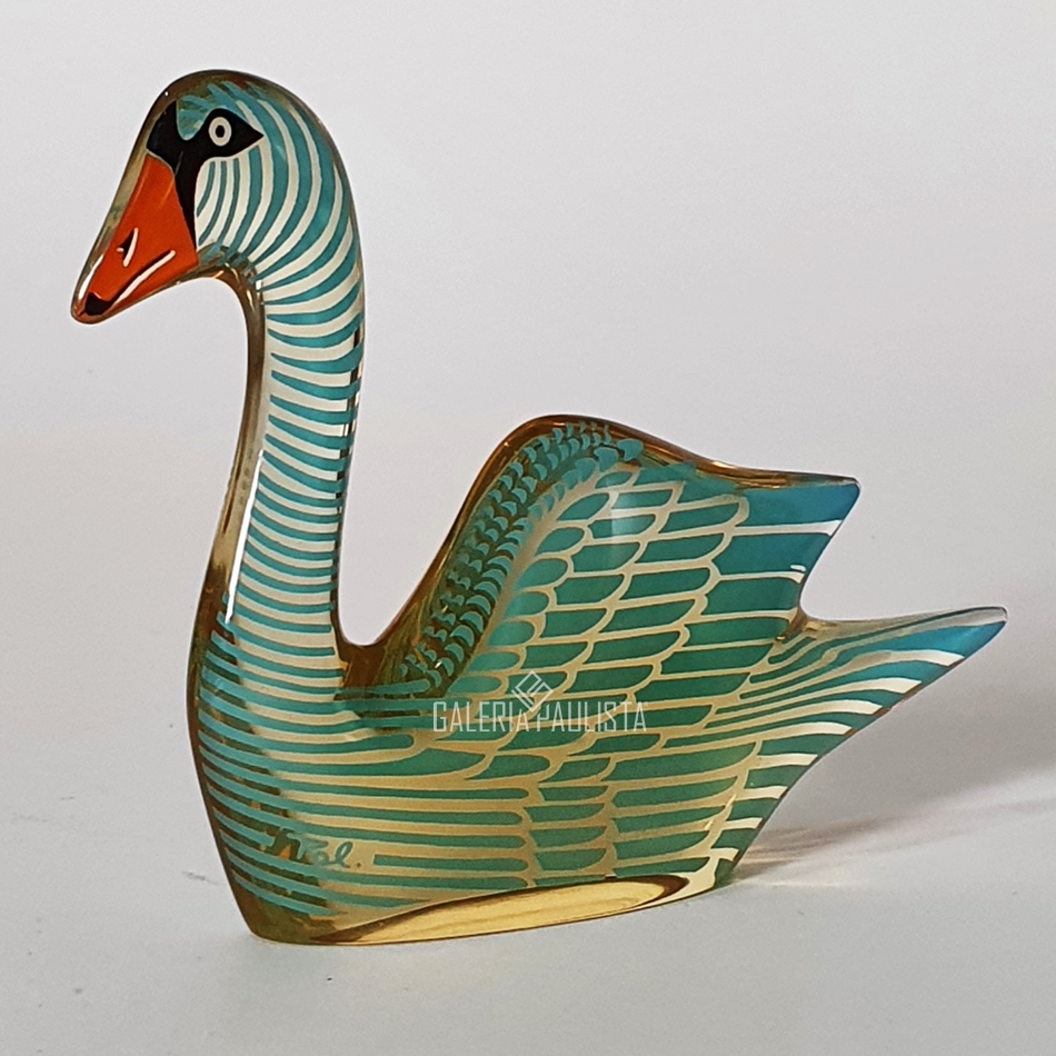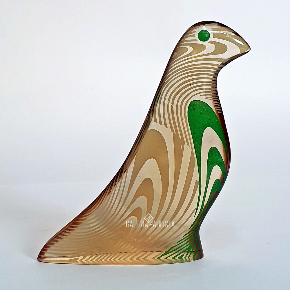 PALATNIK "PÁSSARO" Escultura-Arte Cinética -Med: 18 x 13 cm -Assinada "Pal" -Escultura produzida em resina de poliéster com filme multicolorido "preto, cinza e branco" na sua parte interna. Excelente estado de conservação, sem lascados ou bicados. Manufatura: Abraham Palatnik.