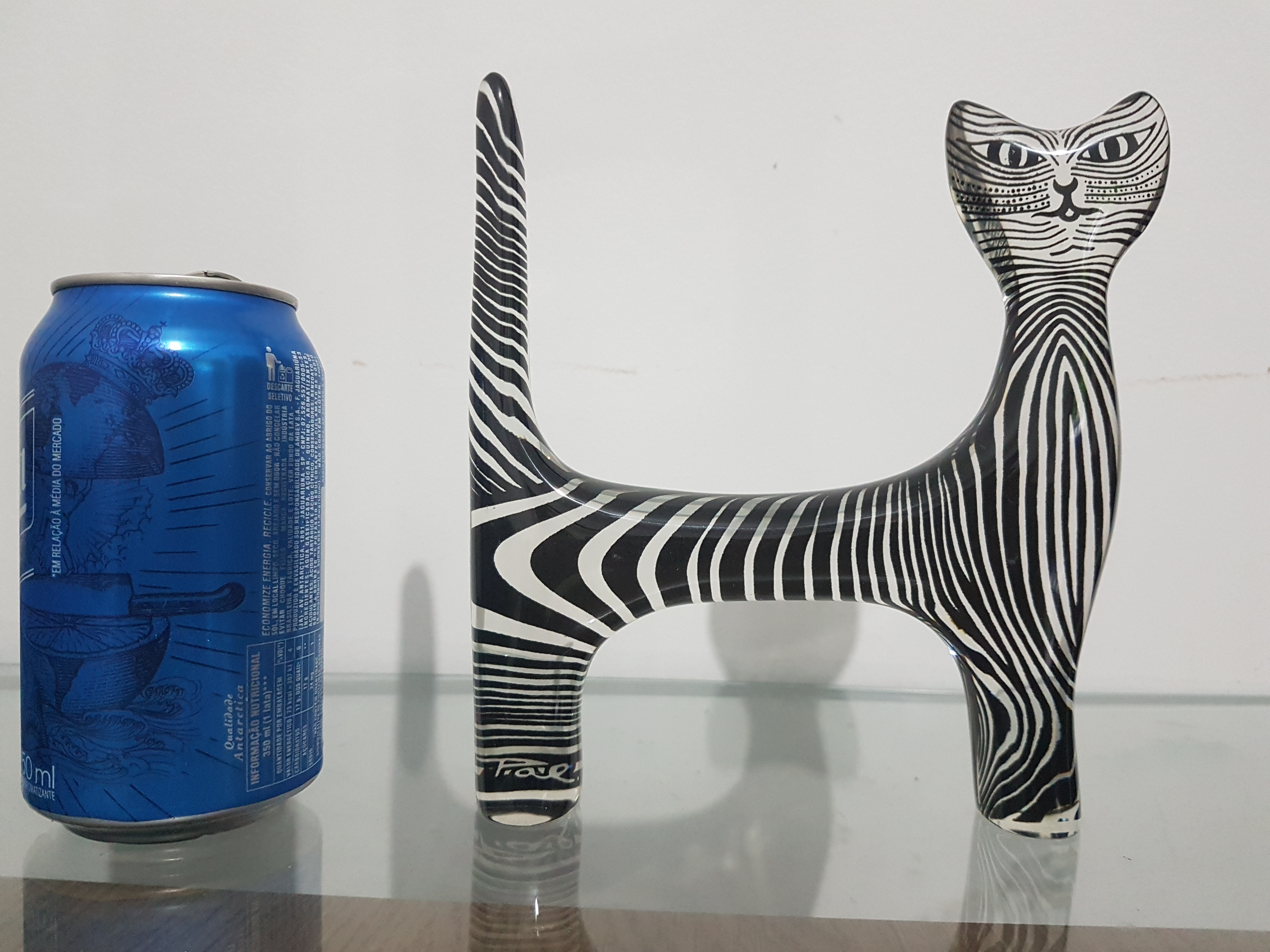 PALATNIK "CORUJA" Escultura-Arte Cinética -Med: 23 x 11 cm -Assinada "Pal" -Escultura produzida em resina de poliéster com filme colorido "preto e bege" na sua parte interna. Excelente estado de conservação, sem lascados ou bicados. Manufatura: Abraham Palatnik.