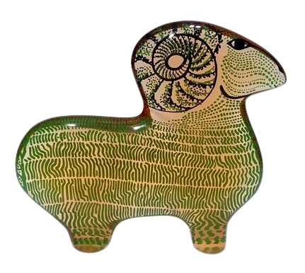 Abraham Palatnik - Maravilhoso Carneiro em tons Verde - Preto e bege - Resina - 14 alt x 15 larg