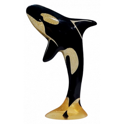 PALATNIK "Baleia Orca" Grande Escultura-Arte Cinética -Med: 25 x 15 cm -Assinada "Pal" -Escultura produzida em resina de poliéster com filme preto e branco na sua parte interna. Excelente estado de conservação, sem lascados ou bicados. Manufatura: Abraham Palatnik.