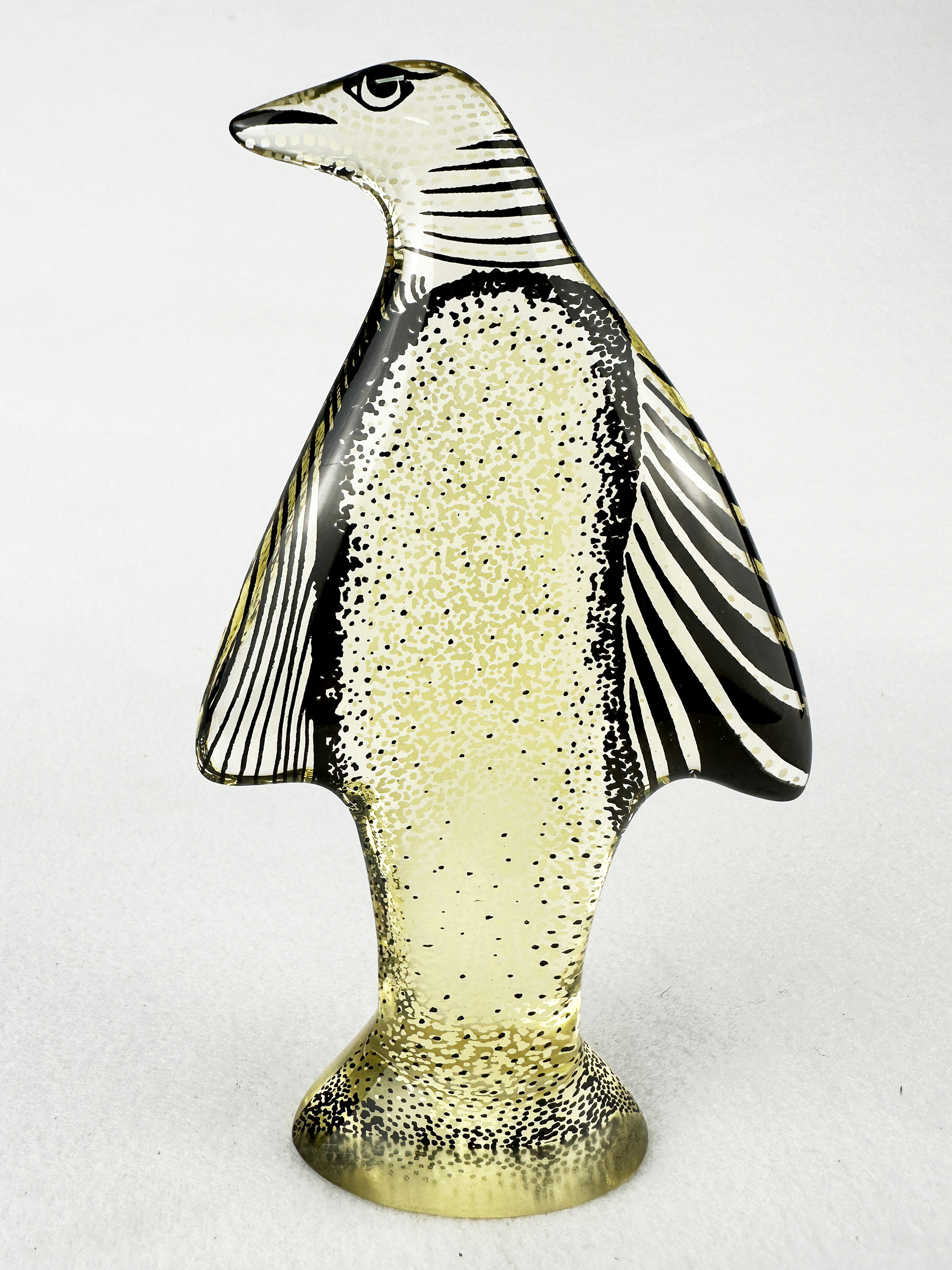 PALATNIK "PINGUIM" Escultura-Arte Cinética -Med: 17,5 x 8 cm -Assinada "Pal" -Escultura produzida em resina de poliéster com filme colorido "preto e amarelo" na sua parte interna. Excelente estado de conservação, sem lascados ou bicados. Manufatura: Abraham Palatnik.