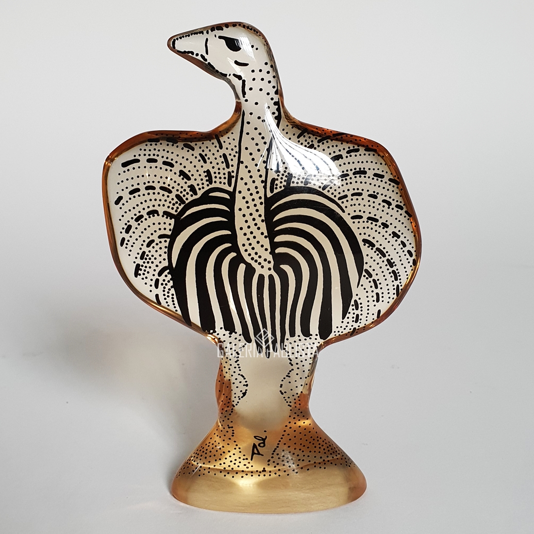 PALATNIK "PÁSSARO" Escultura-Arte Cinética -Med: 18 x 13 cm -Assinada "Pal" -Escultura produzida em resina de poliéster com filme multicolorido "preto, cinza e branco" na sua parte interna. Excelente estado de conservação, sem lascados ou bicados. Manufatura: Abraham Palatnik.