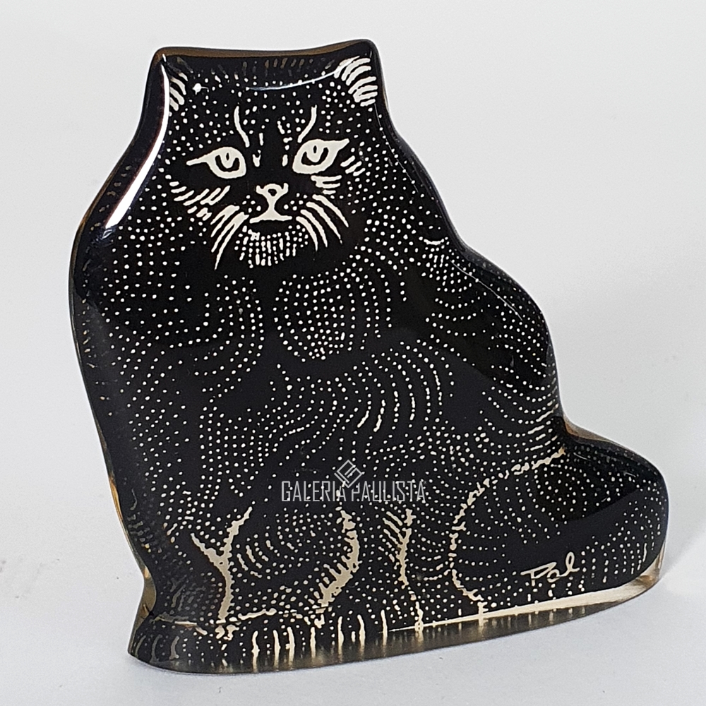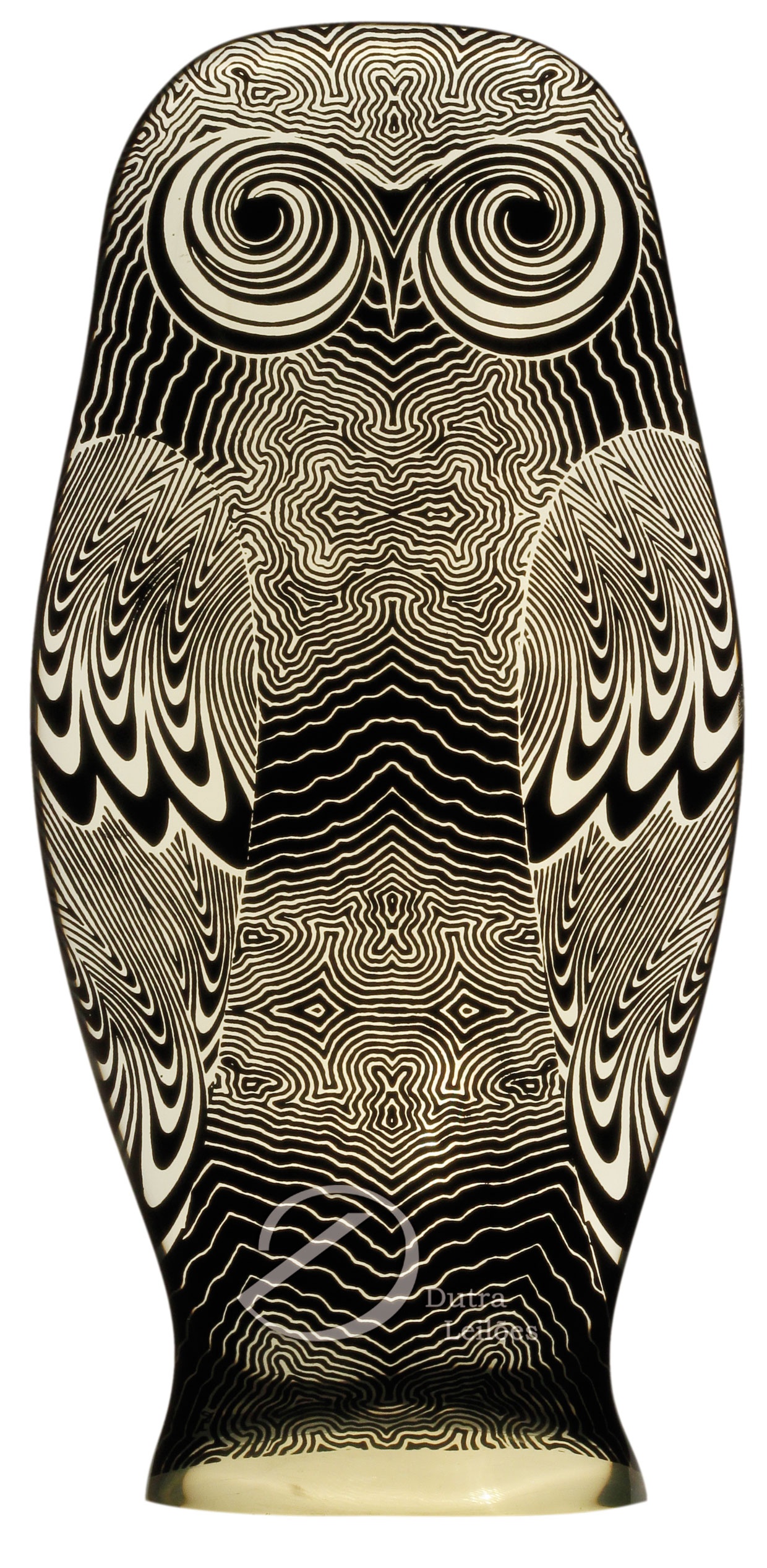 PALATNIK "CORUJA" Escultura-Arte Cinética -Med: 23 x 11 cm -Assinada "Pal" -Escultura produzida em resina de poliéster com filme colorido "preto e bege" na sua parte interna. Excelente estado de conservação, sem lascados ou bicados. Manufatura: Abraham Palatnik.