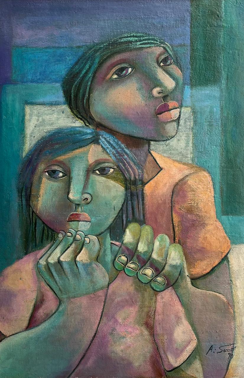 Adélio Sarro óleo sobre tela 60 x 40cm intitulada "Viagem Eterna" ass. CID e verso datada 1990