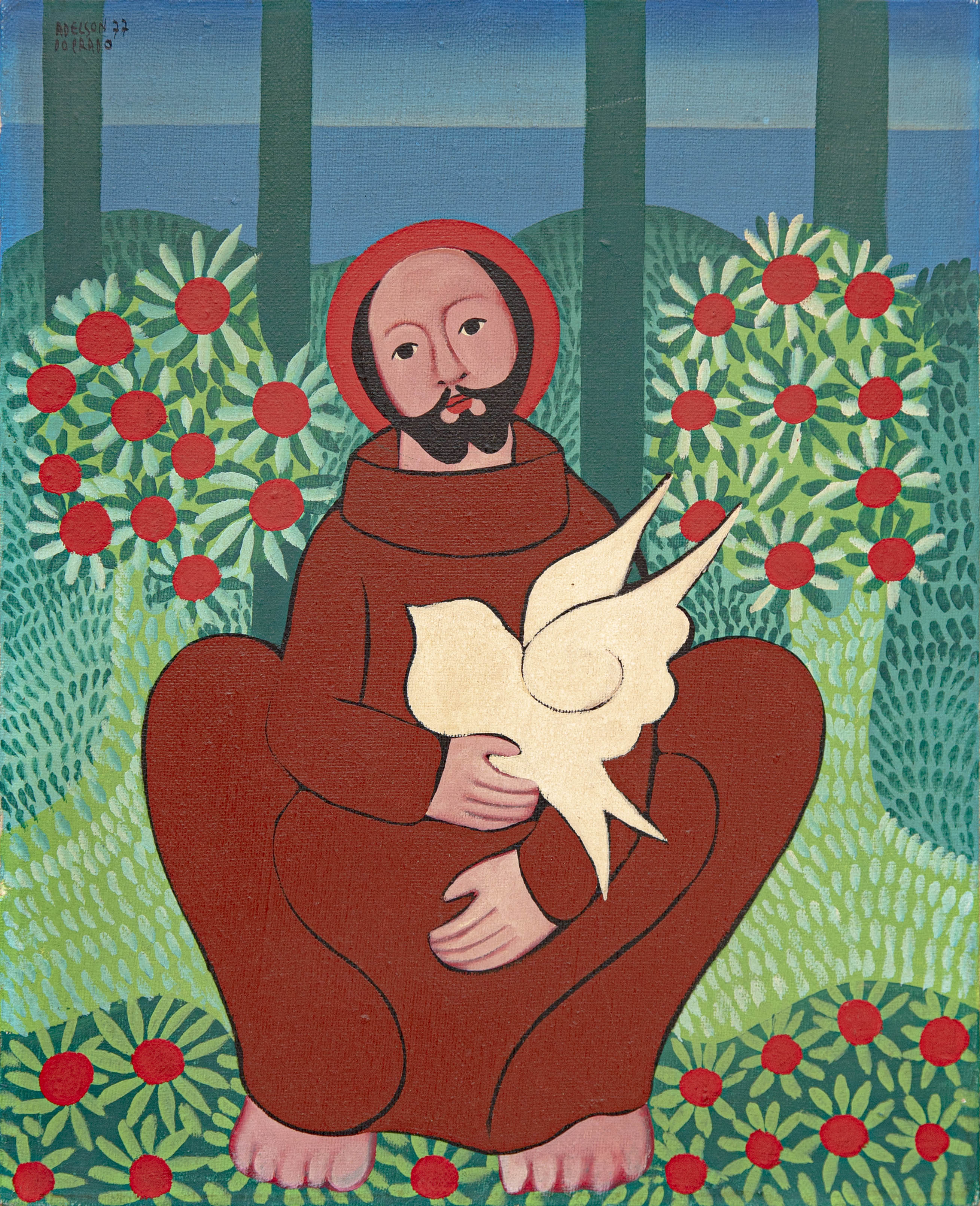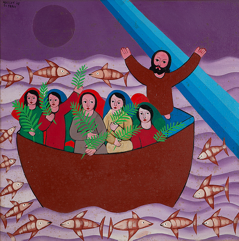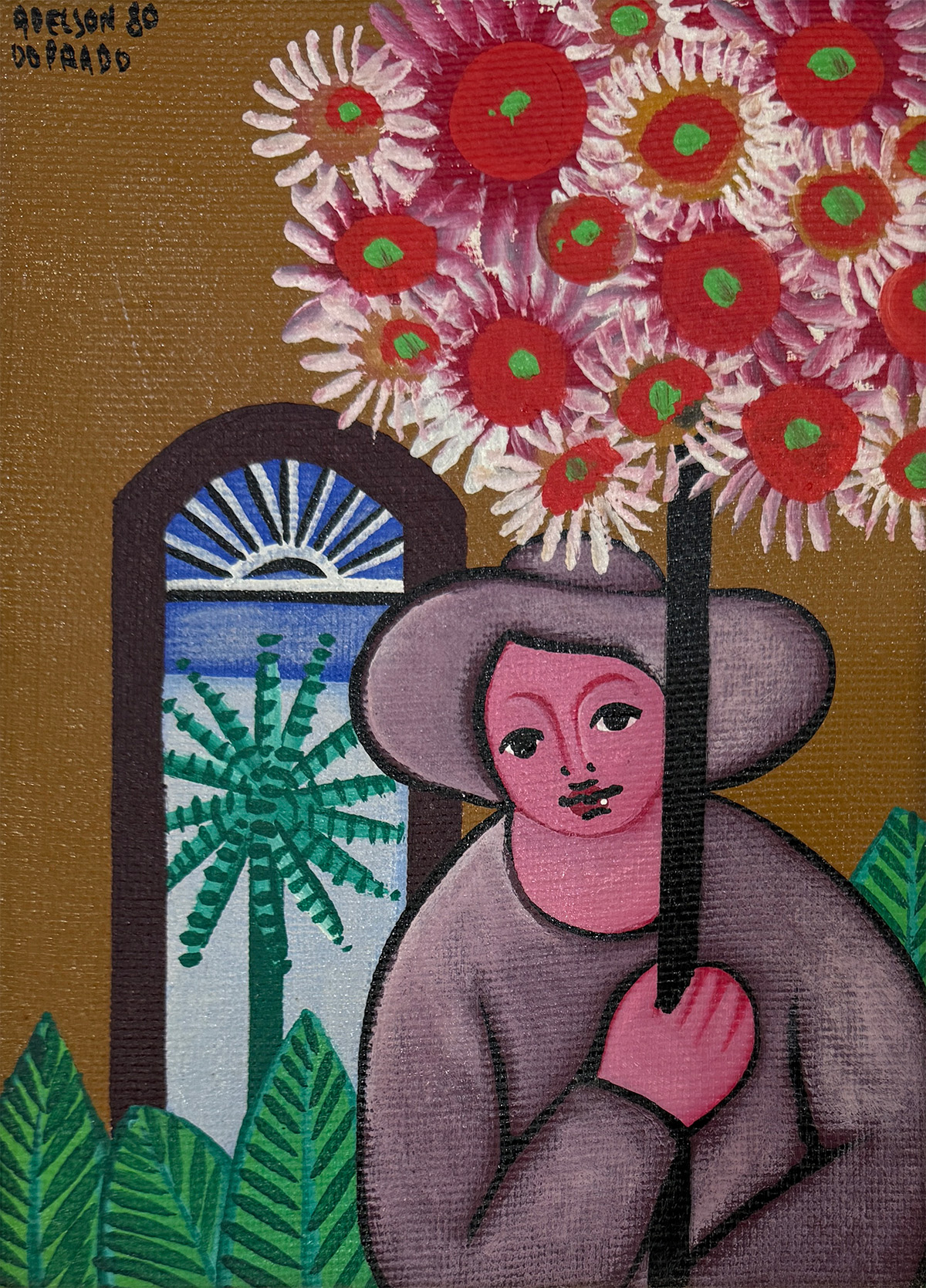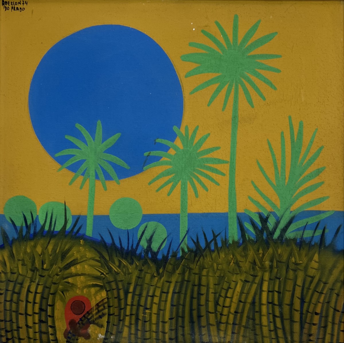 Adelson Filadelfo do Prado (Vitória da Conquista BA 1944). Pintor e desenhista. Autodidata, começa a desenhar aos treze anos, copiando imagens religiosas e igrejas da sua cidade. Realiza, em 1960, a 1ª Convenção dos Artistas Locais e inaugura o painel da Biblioteca Pública Monteiro Lobato, em Vitória da Conquista. Em 1977, inaugura o painel do Salão Nobre da Tribuna de Honra do Estádio do Maracanã, no Rio de Janeiro.