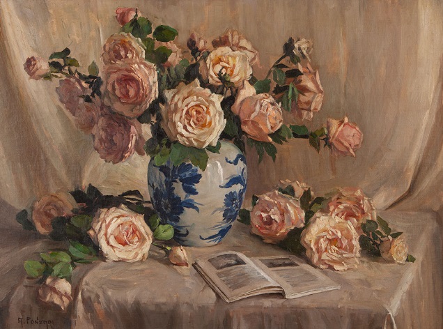 ADOLFO FONZARI - Rosas - - óleo sobre tela - 50 x 65 cm. Ass. inf. dir.