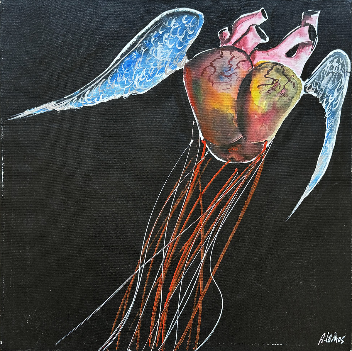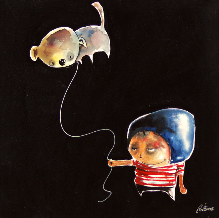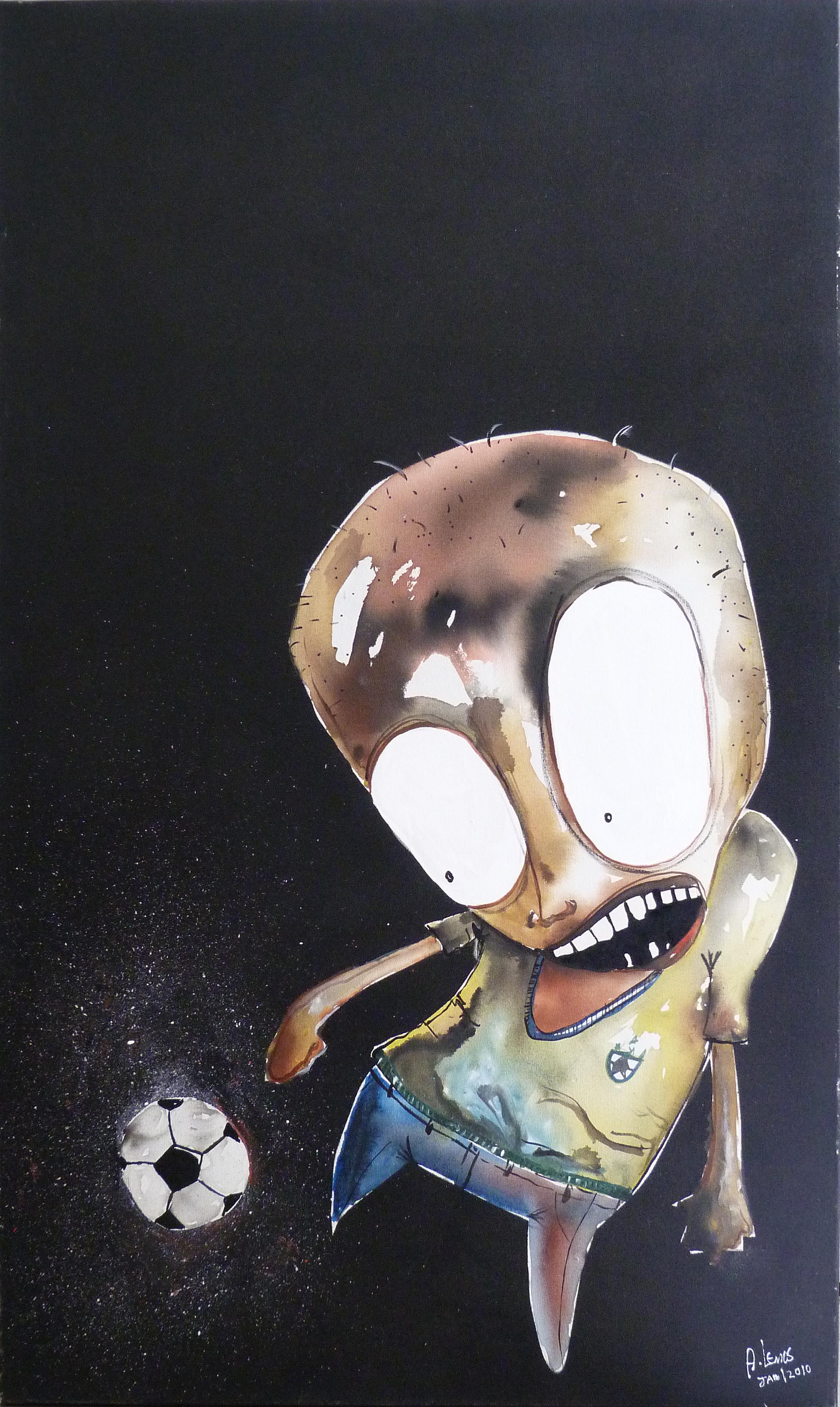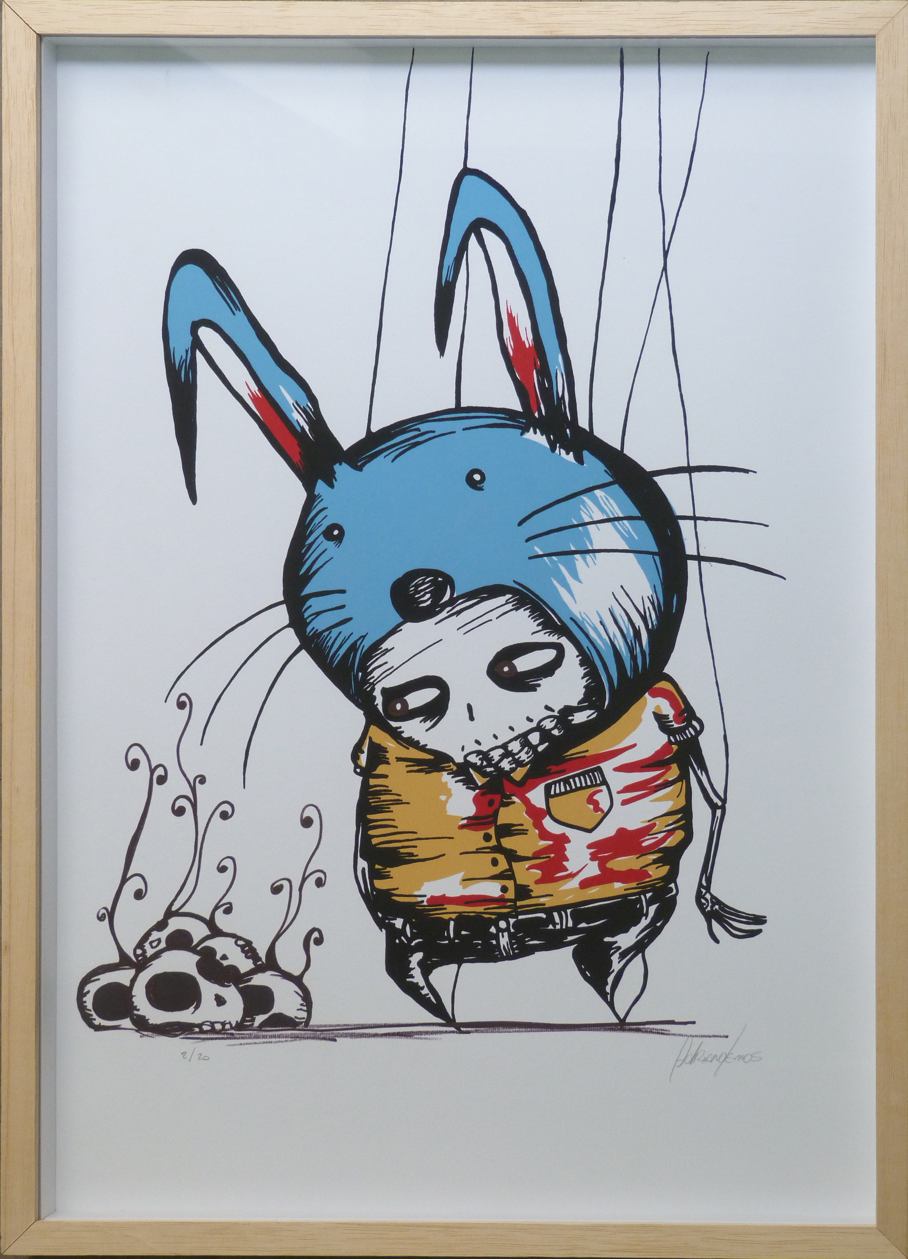 Em sua arte ele destaca um universo caótico. A ideia é usá-la para instigar a reflexão sobre o porquê manipulamos ou nos deixamos manipular. Em seus traços homens e mulheres estão presos, tais quais marionetes, cercados por elementos macabros, como caveiras.