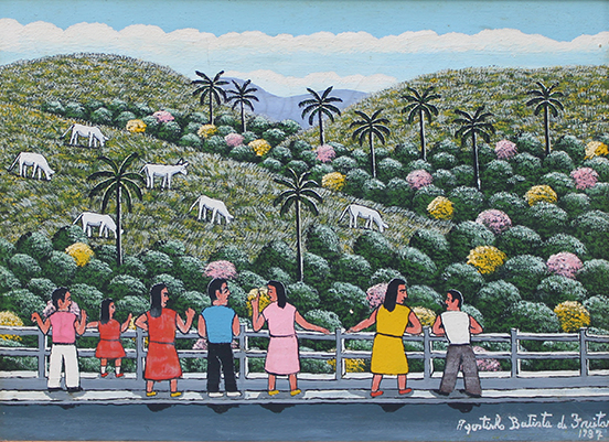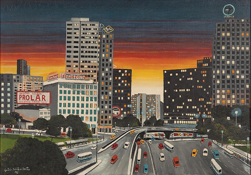 Agostinho Batista de Freitas (Paulínia, distrito de Campinas SP 1927 - São Paulo SP 1997). Pintor e desenhista. Atua como eletricista quando, por volta de 1950, inicia-se na pintura como artista autodidata. Vende seus trabalhos na Praça do Correio, em São Paulo, onde é descoberto por Pietro Maria Bardi, que encomenda-lhe um registro da vista panorâmica da cidade, observada do alto do edifício do Banco do Estado de São Paulo, e que, em 1952, organiza sua primeira exposição individual, no Museu de Arte de São Paulo - Masp. Aspectos da paisagem urbana paulistana são temas recorrentes na sua produção.