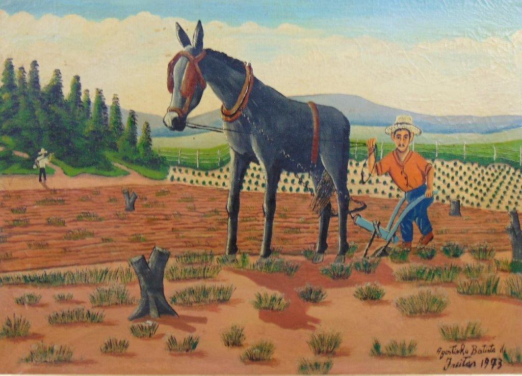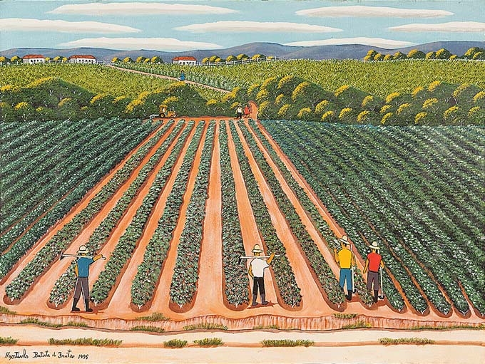 AGOSTINHO BATISTA DE FREITAS "Colheita-1987" Oleo Sobre Tela -Med: 17x25 cm (obra) e 34x42 cm (mold) -Assinado e Dat 1987 no CID. Com moldura em madeira. Estado de Conservação: Ótimo