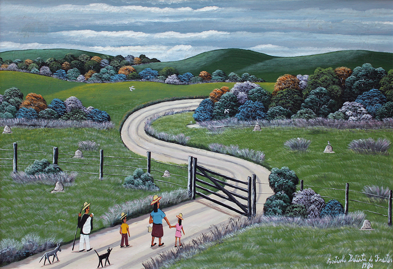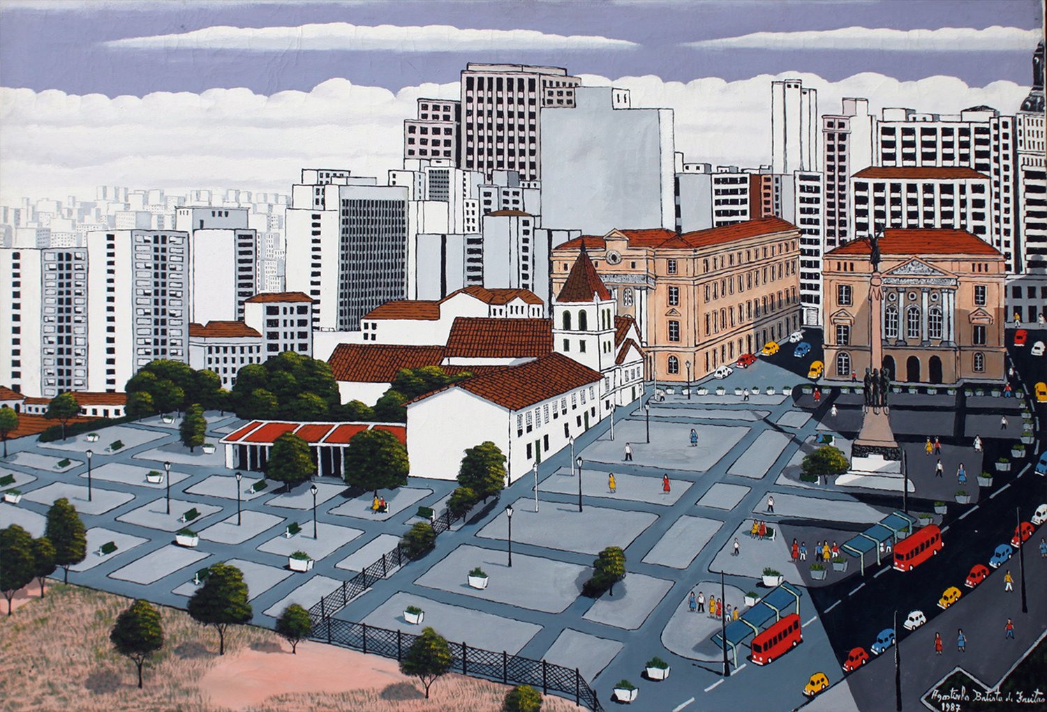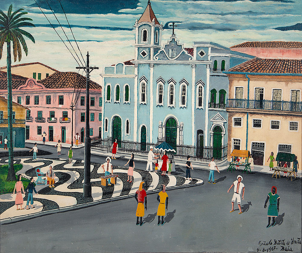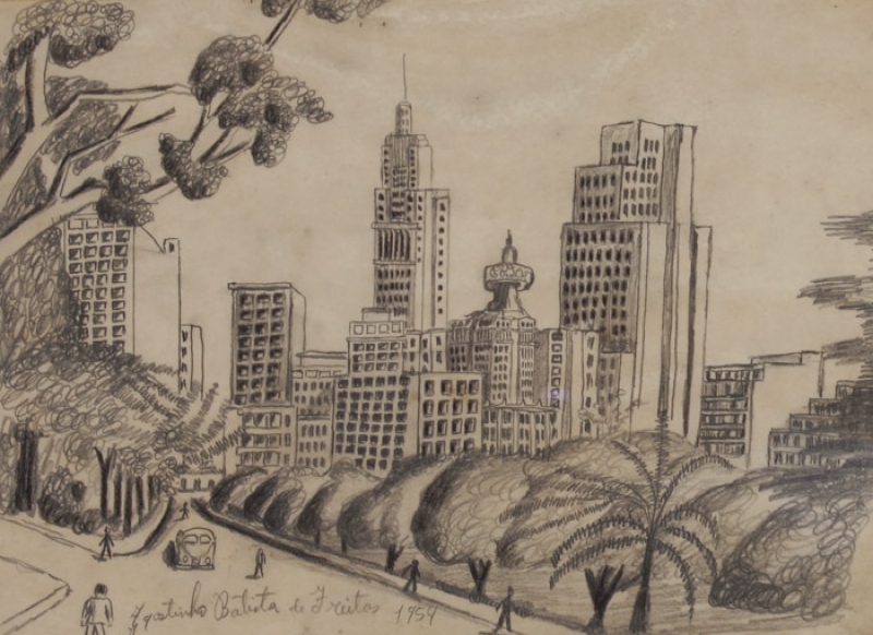 Agostinho Batista de Freitas (Paulínia, distrito de Campinas SP 1927 - São Paulo SP 1997). Pintor e desenhista. Atua como eletricista quando, por volta de 1950, inicia-se na pintura como artista autodidata. Vende seus trabalhos na Praça do Correio, em São Paulo, onde é descoberto por Pietro Maria Bardi, que encomenda-lhe um registro da vista panorâmica da cidade, observada do alto do edifício do Banco do Estado de São Paulo, e que, em 1952, organiza sua primeira exposição individual, no Museu de Arte de São Paulo - Masp. Aspectos da paisagem urbana paulistana são temas recorrentes na sua produção.