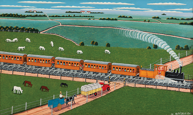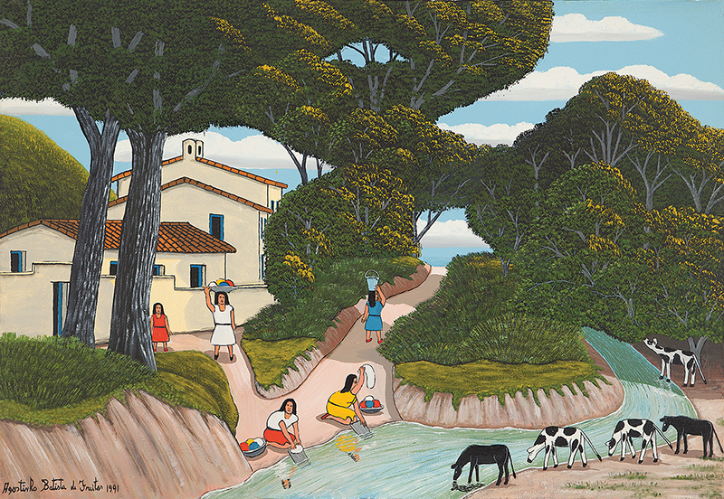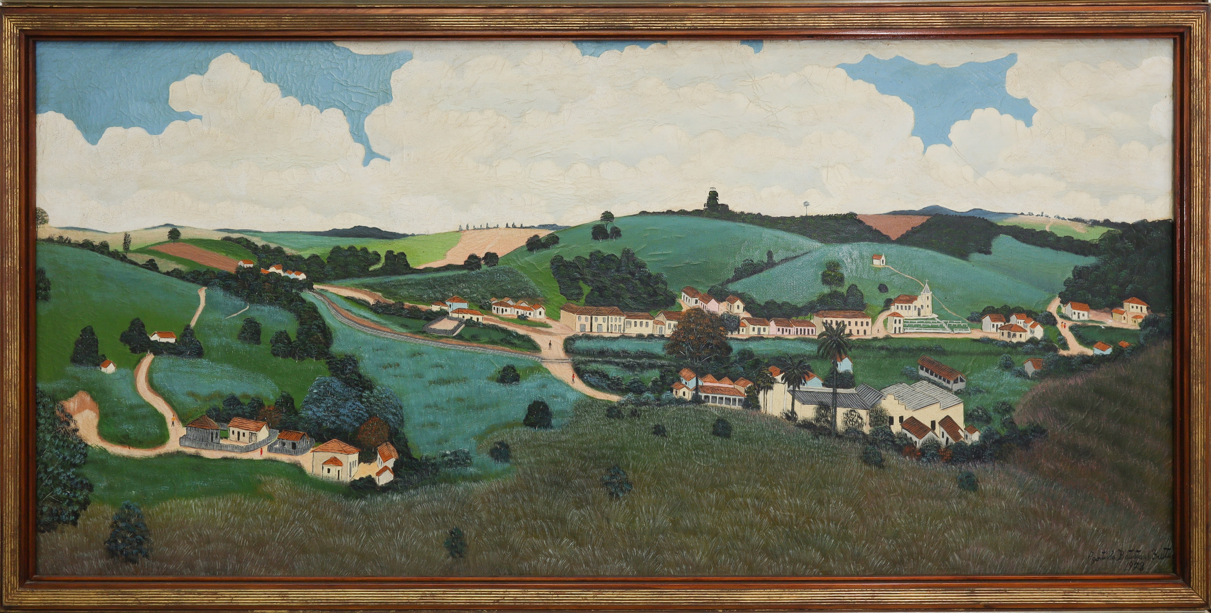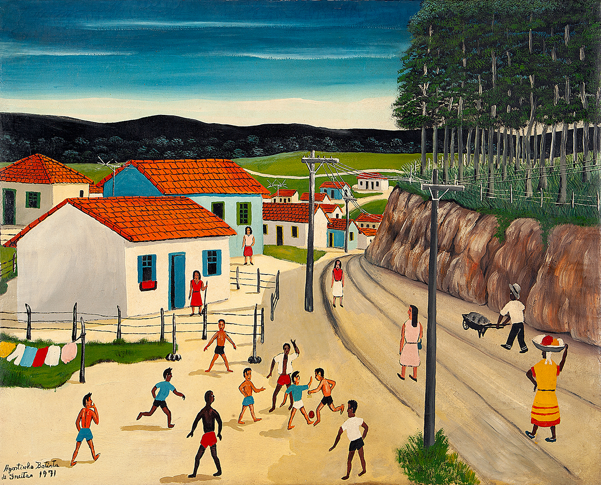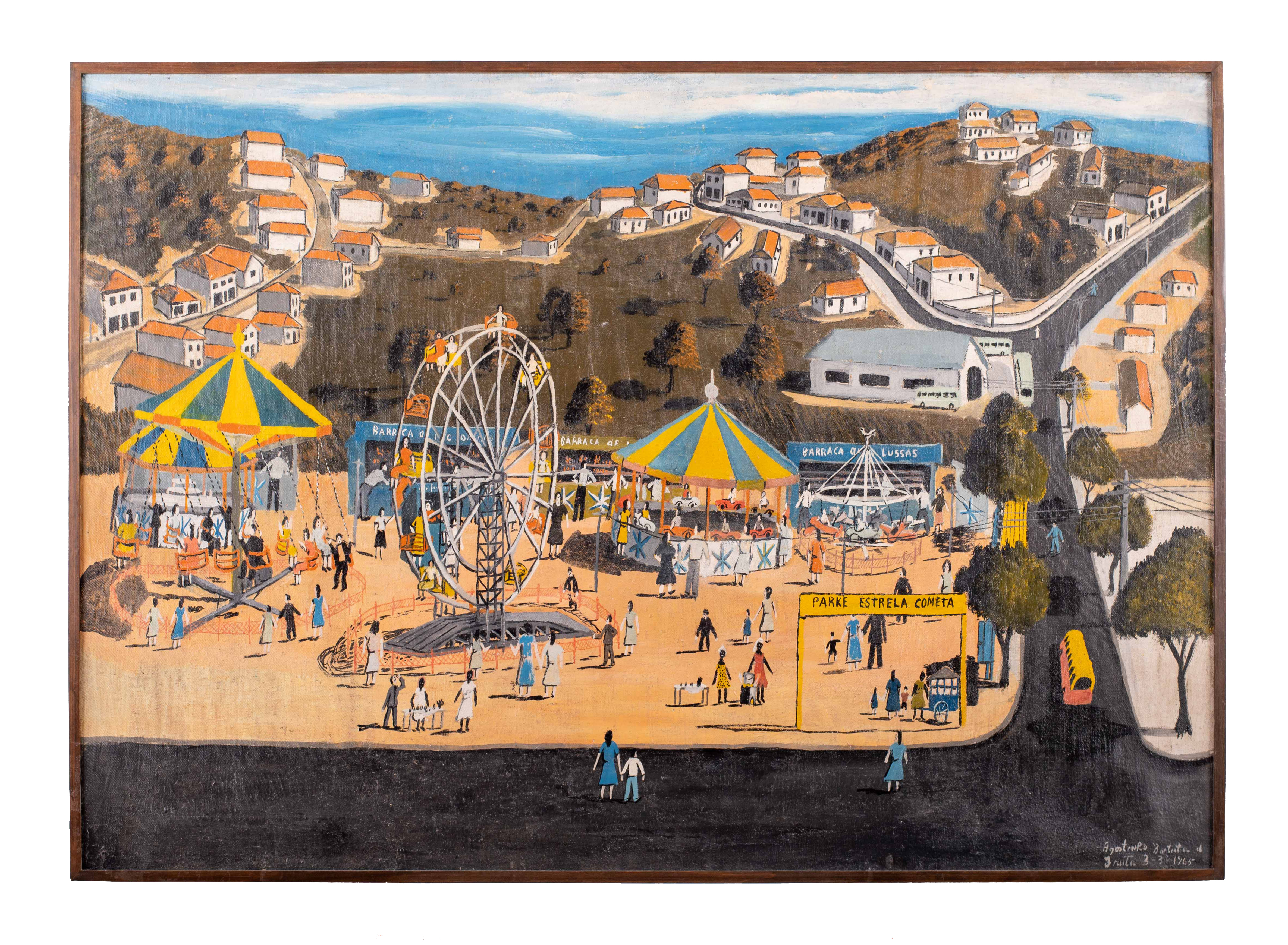 Agostinho Batista de Freitas (Paulínia, distrito de Campinas SP 1927 - São Paulo SP 1997). Pintor e desenhista. Atua como eletricista quando, por volta de 1950, inicia-se na pintura como artista autodidata. Vende seus trabalhos na Praça do Correio, em São Paulo, onde é descoberto por Pietro Maria Bardi, que encomenda-lhe um registro da vista panorâmica da cidade, observada do alto do edifício do Banco do Estado de São Paulo, e que, em 1952, organiza sua primeira exposição individual, no Museu de Arte de São Paulo - Masp. Aspectos da paisagem urbana paulistana são temas recorrentes na sua produção.