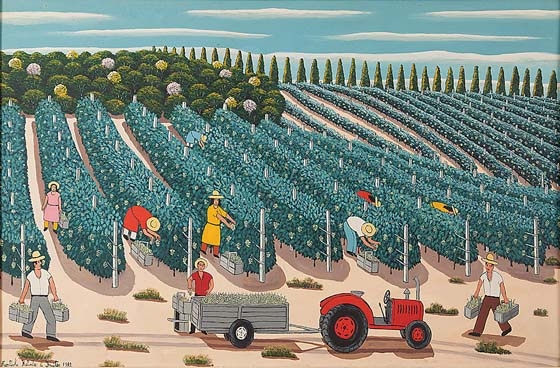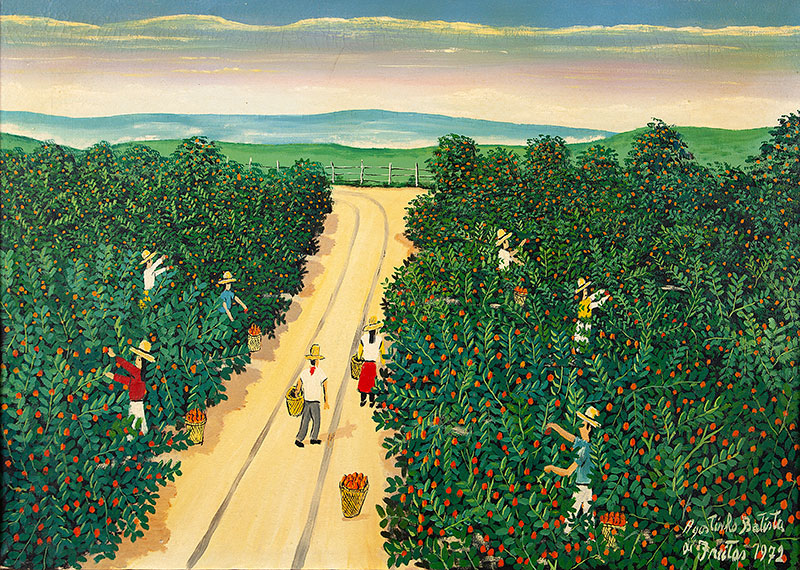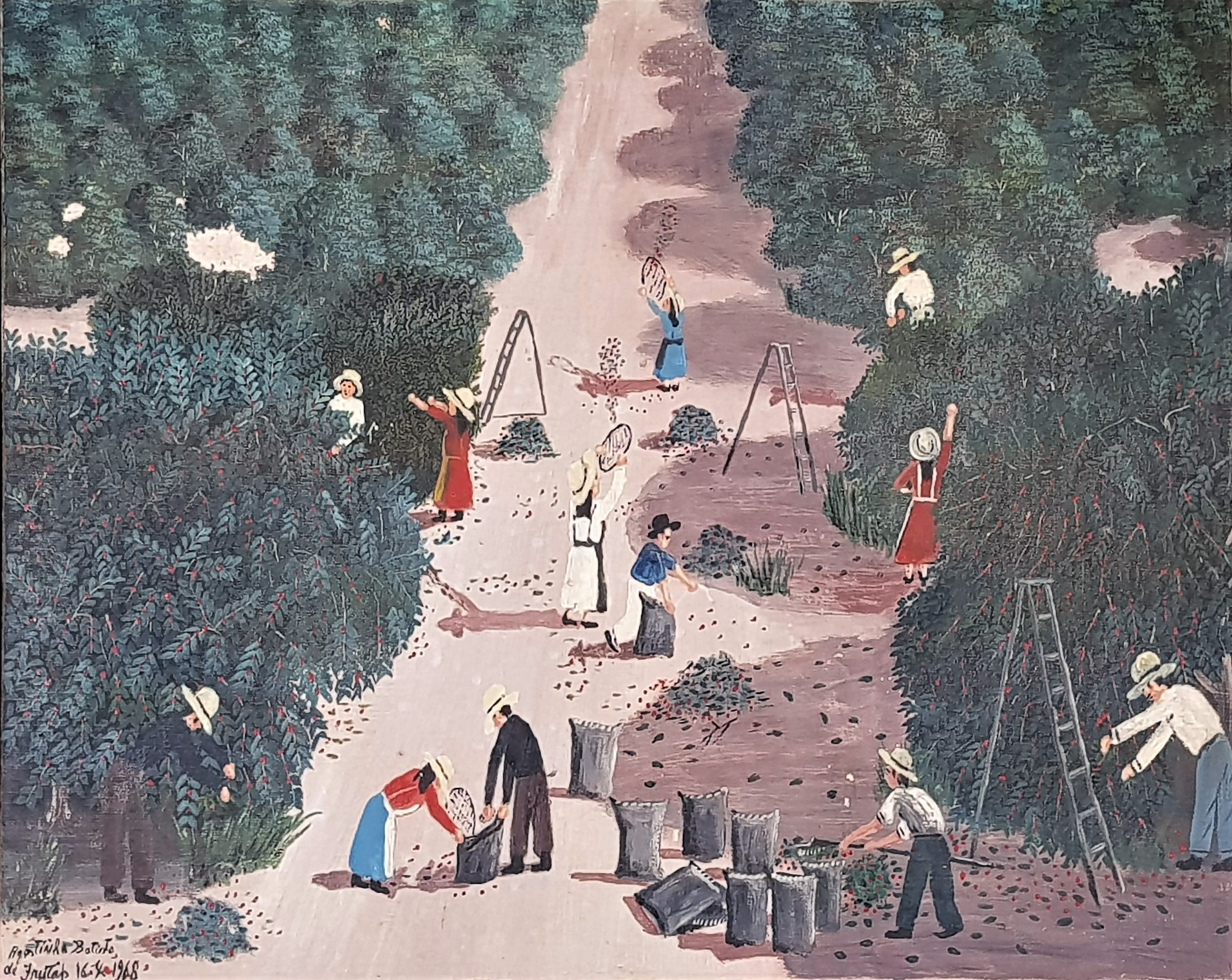 AGOSTINHO BATISTA DE FREITAS "Colheita-1987" Oleo Sobre Tela -Med: 17x25 cm (obra) e 34x42 cm (mold) -Assinado e Dat 1987 no CID. Com moldura em madeira. Estado de Conservação: Ótimo