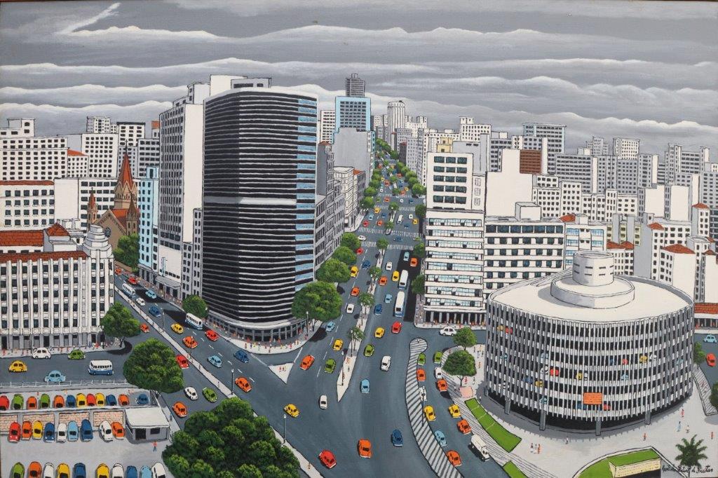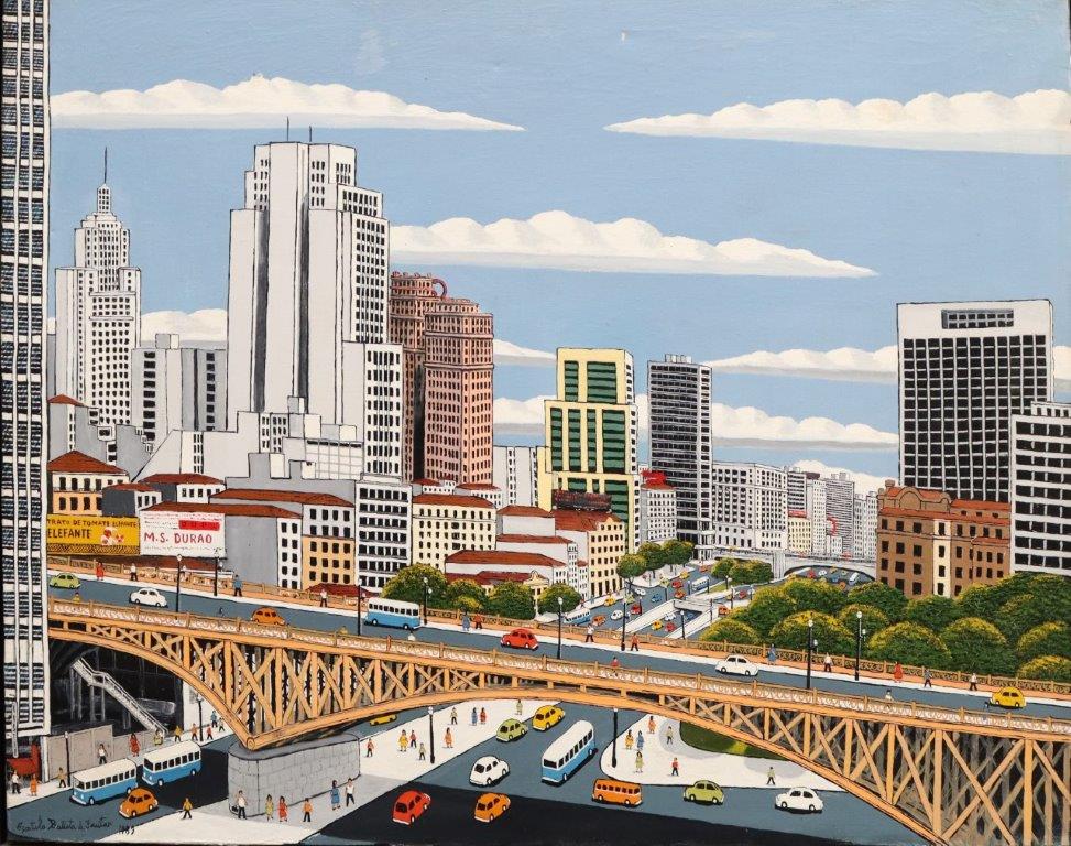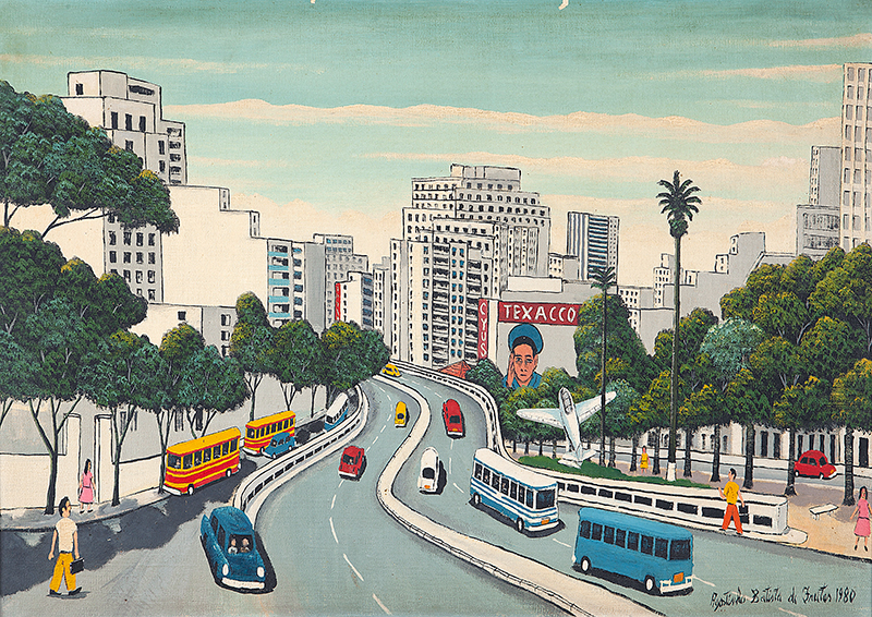 Agostinho Batista de Freitas (Paulínia, distrito de Campinas SP 1927 - São Paulo SP 1997). Pintor e desenhista. Atua como eletricista quando, por volta de 1950, inicia-se na pintura como artista autodidata. Vende seus trabalhos na Praça do Correio, em São Paulo, onde é descoberto por Pietro Maria Bardi, que encomenda-lhe um registro da vista panorâmica da cidade, observada do alto do edifício do Banco do Estado de São Paulo, e que, em 1952, organiza sua primeira exposição individual, no Museu de Arte de São Paulo - Masp. Aspectos da paisagem urbana paulistana são temas recorrentes na sua produção.