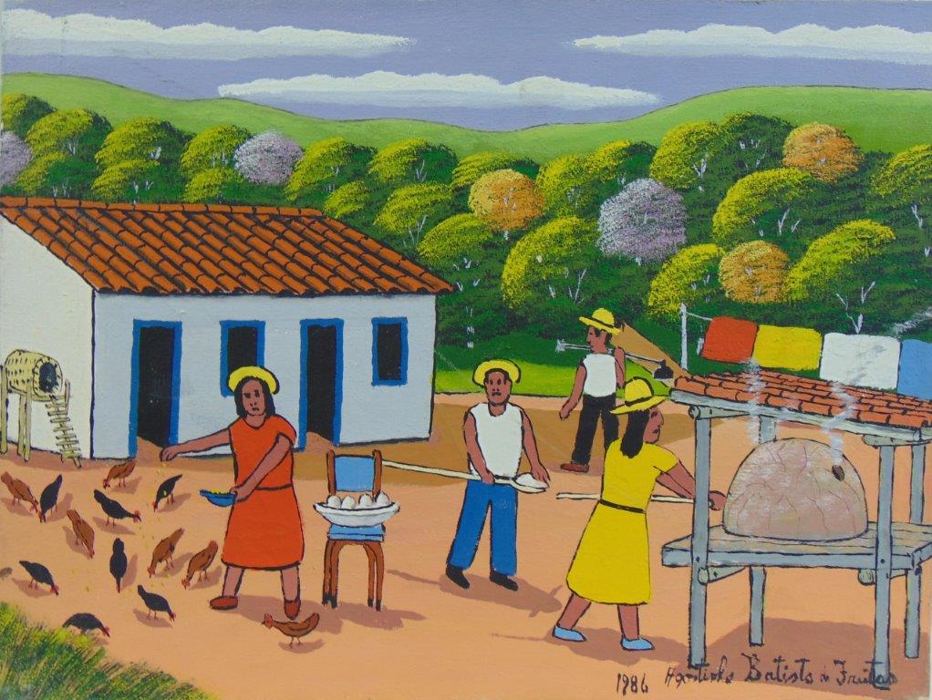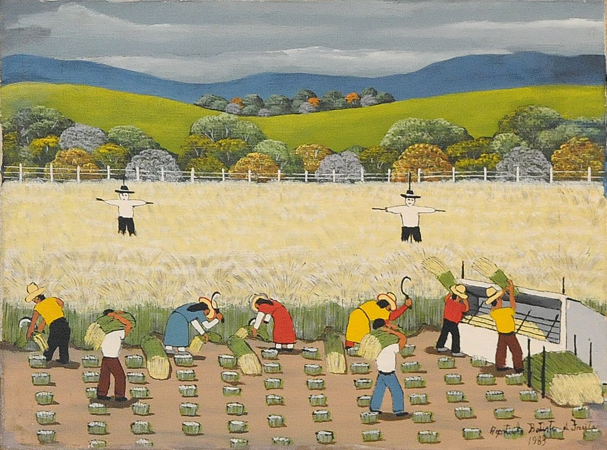 AGOSTINHO BATISTA DE FREITAS "Colheita-1987" Oleo Sobre Tela -Med: 17x25 cm (obra) e 34x42 cm (mold) -Assinado e Dat 1987 no CID. Com moldura em madeira. Estado de Conservação: Ótimo
