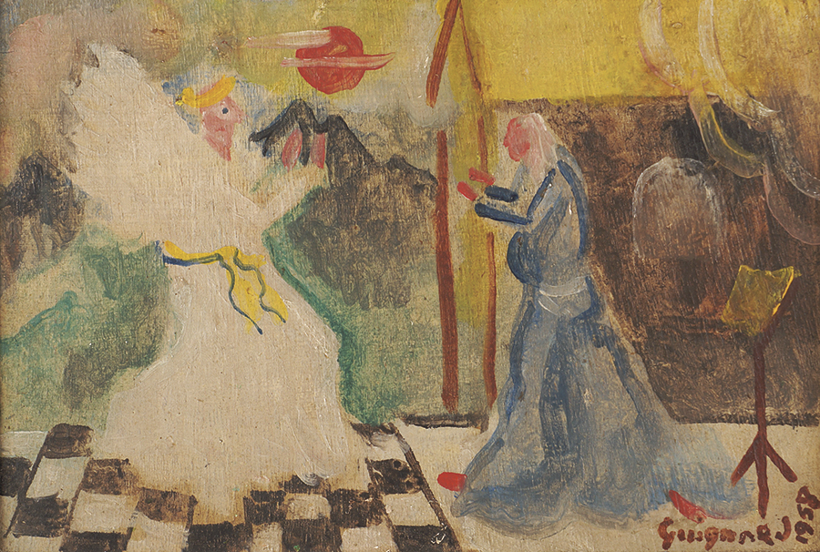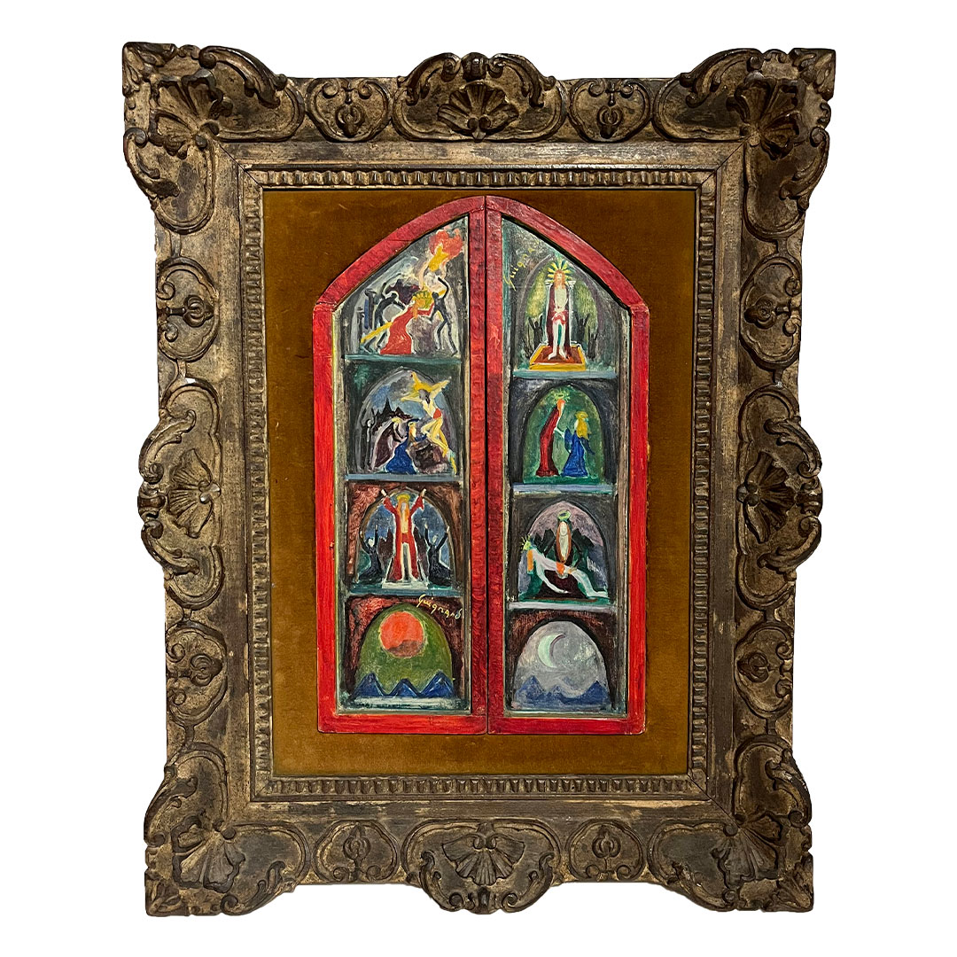Alberto da Veiga Guignard - Violão - Violão pintado - Assinado - 97 x 36 x 11 cm. Procedência: Solange Botelho, aluna do artista. Celma Albuquerque (coleção particular). Coleção Particular Belo Horizonte, Minas Gerais. Possui dedicatória para Solange Botelho no braço do Violão.