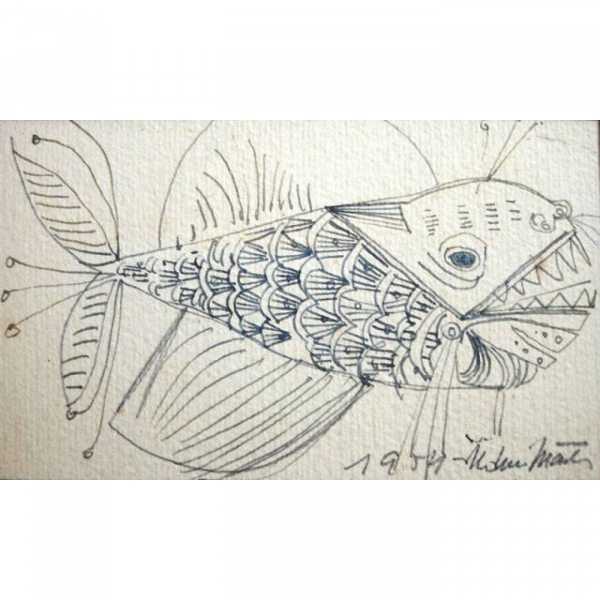 ALDEMIR MARTINS - Cactus - Nanquim sobre papel - Dat. 1959 - CID - (Acompanha certificado) - 25 x 20 cm.