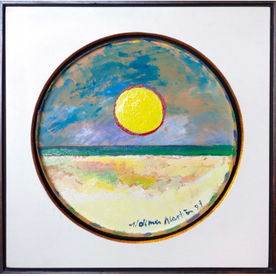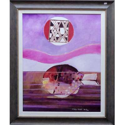 Aldemir Martins - Marinha, 1982 - Acrílica sobre tela, assinado, datado e dedicado inferior esquerdo e no verso. Obra reproduzida nos livros: Aldemir Martins “O Viajante Amigo” Pgs.86e87. Aldemir Martins “Linhas Cor e Forma”Pg.224.50 x 100 cm.