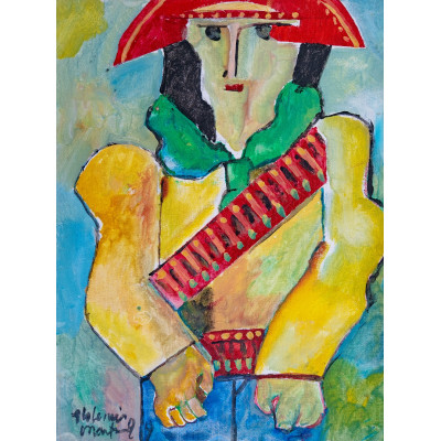 ALDEMIR MARTINS - Mulher rendeira - mista sobre papel - CID - Dat. 1987 - 59 x 41 cm. (Papel manchado)