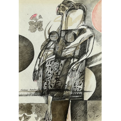 Aldemir Martins - Figura - 1961 - Nanquim aquarelado sobre cartão - Assinado meio inferior - 105 x 70 cm. Situado Roma.