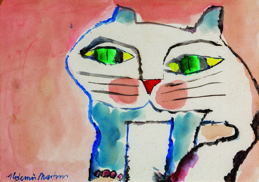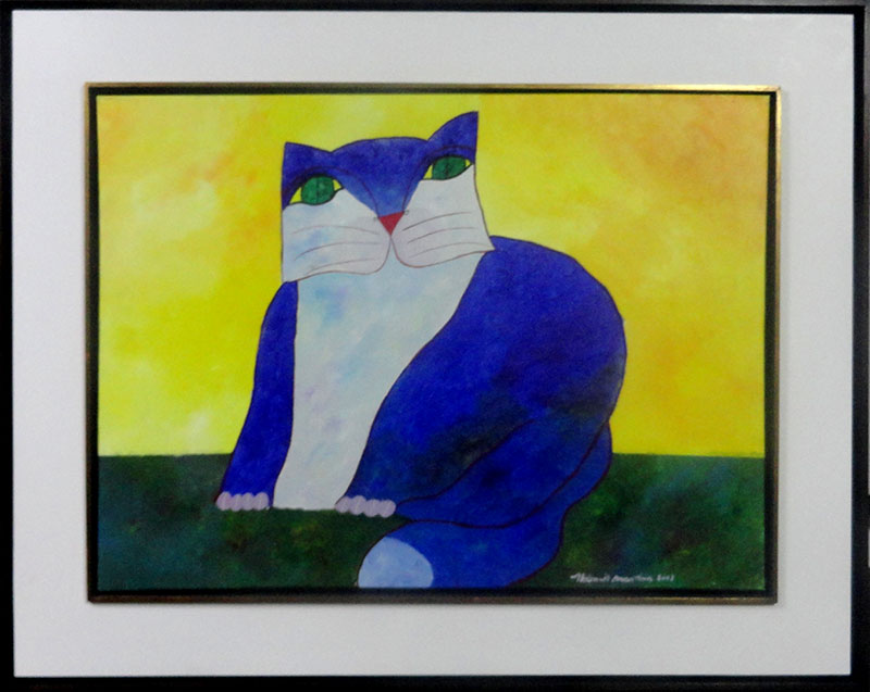 Aldemir Martins - Gatinho azul. Acrílica sobre papel, 22x14,5 cm, 1985, A.C.I.D. Sem moldura. Com certificado de autenticidade do Estúdio Aldemir Martins
