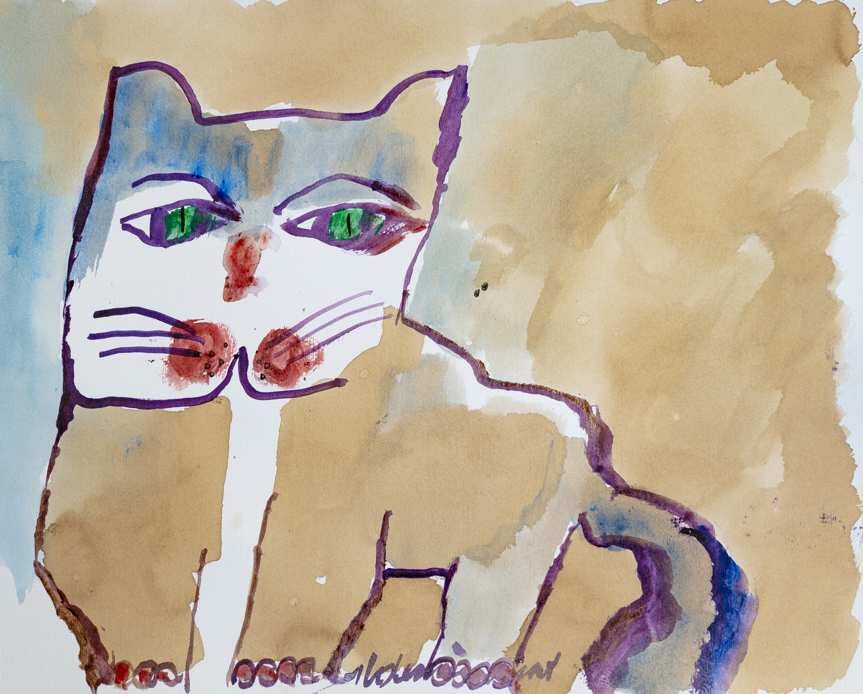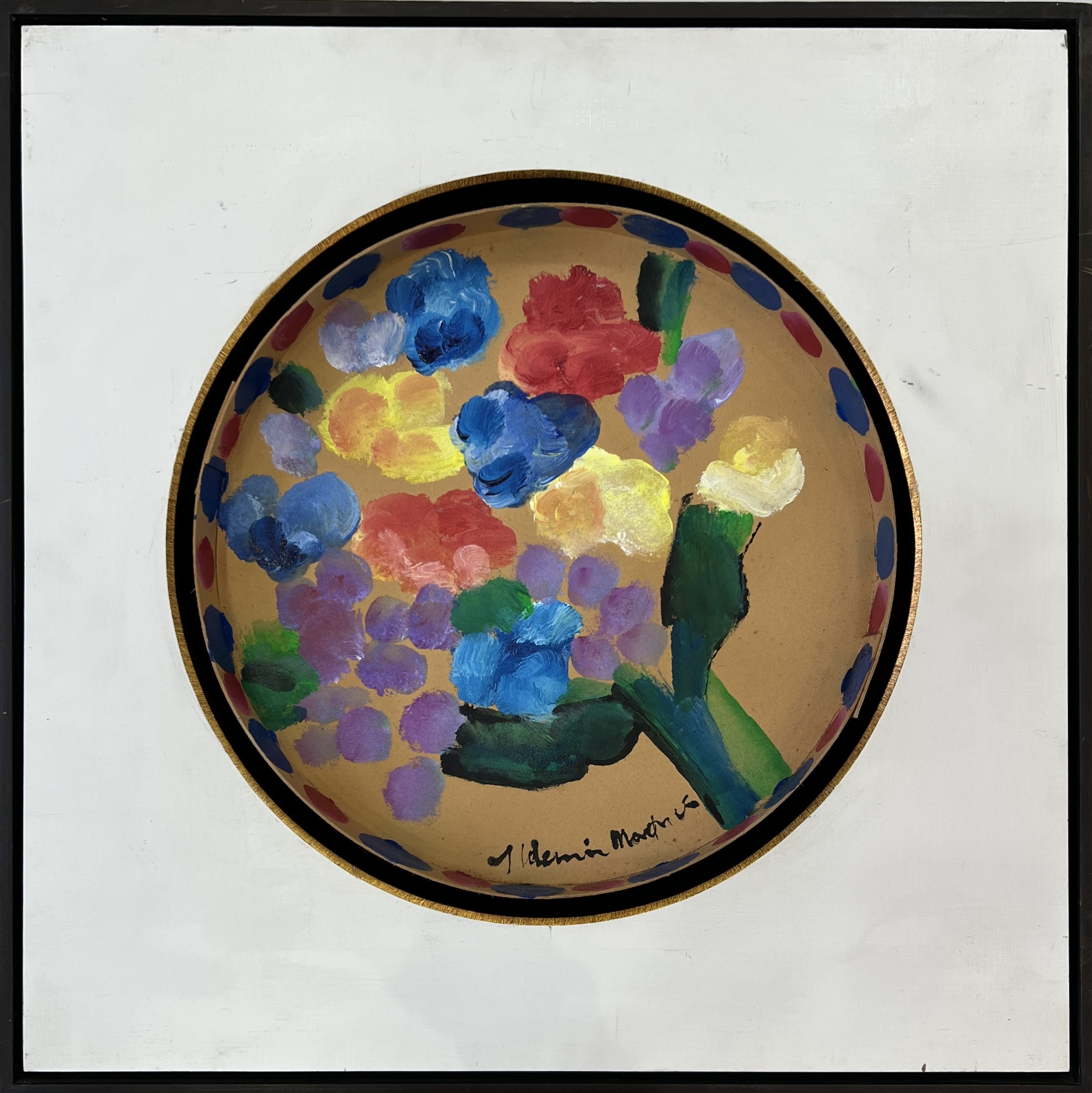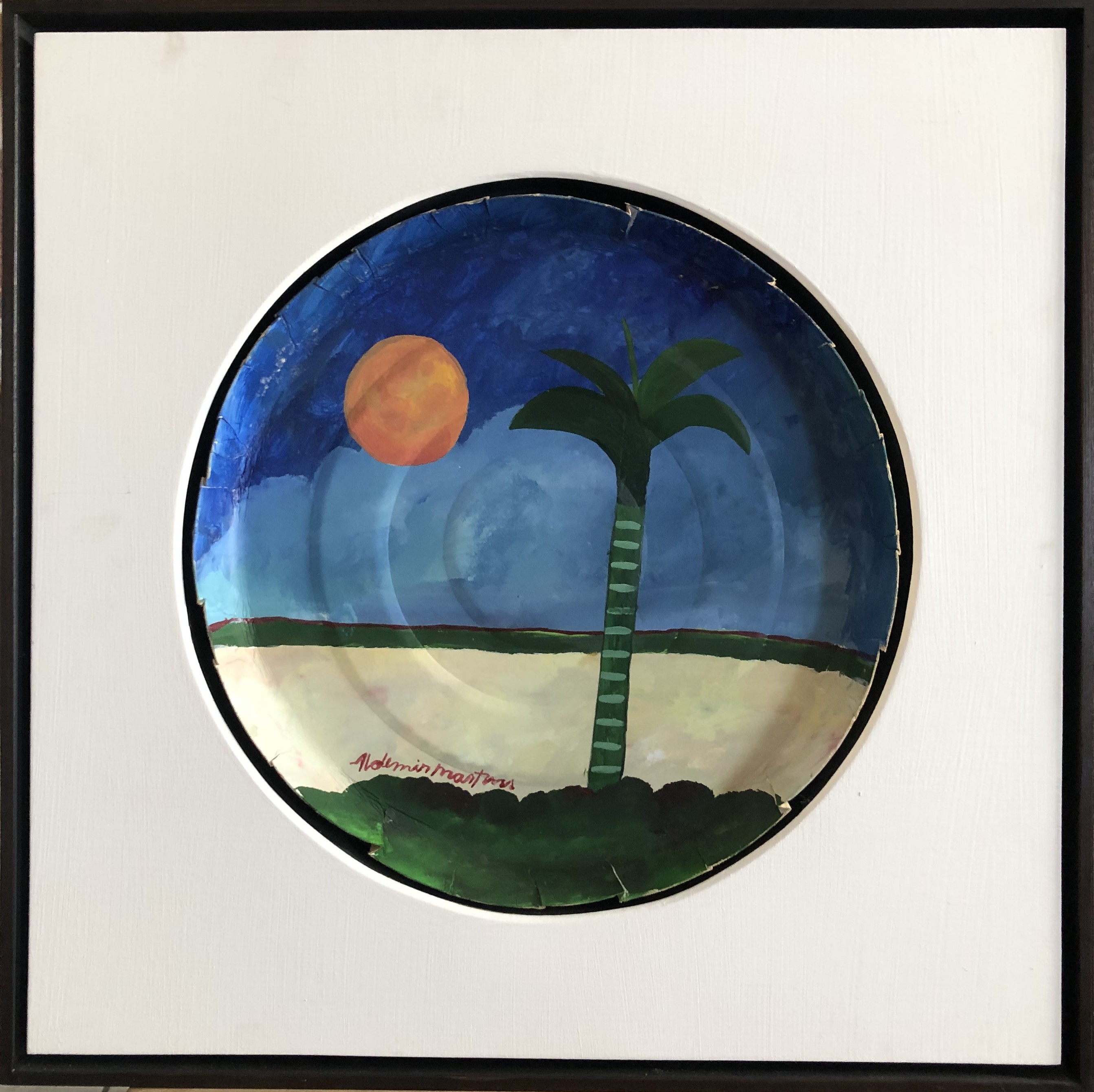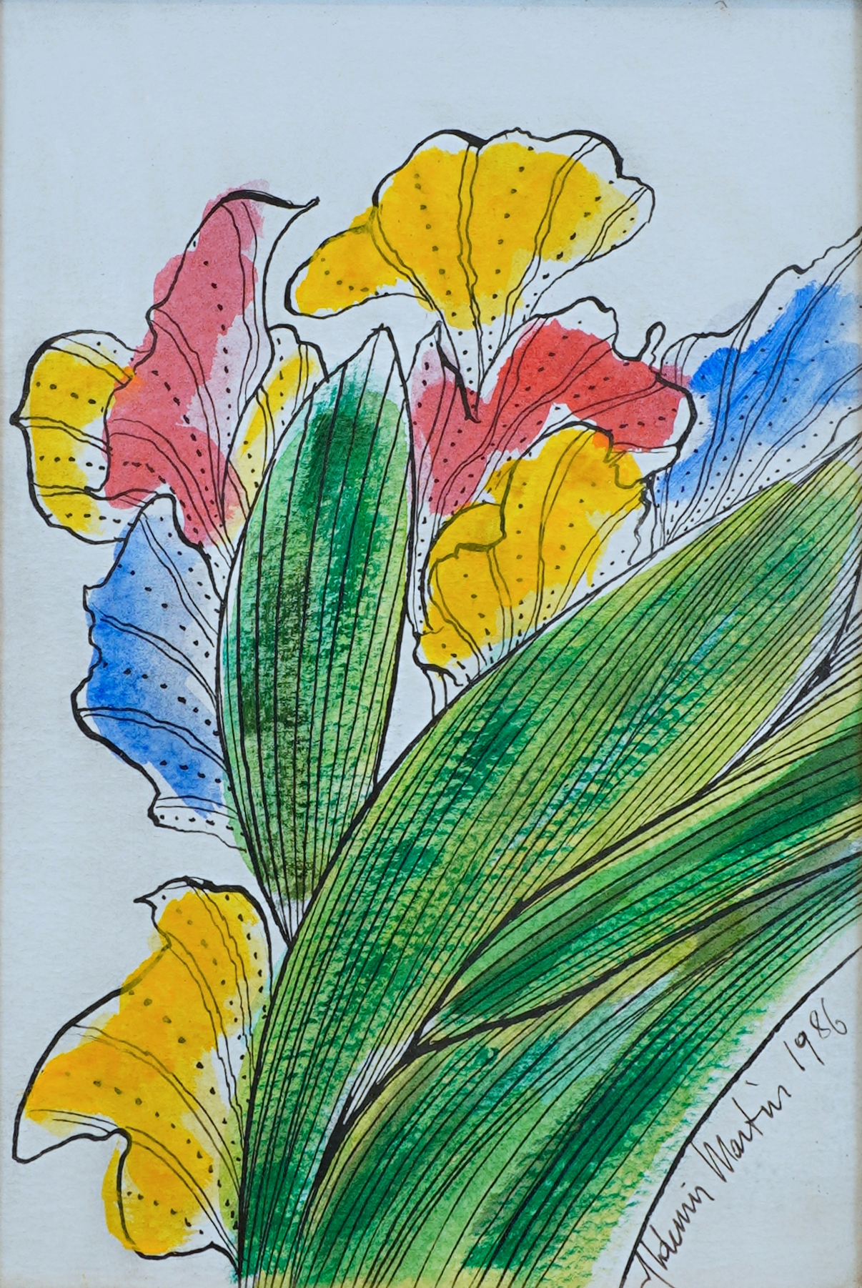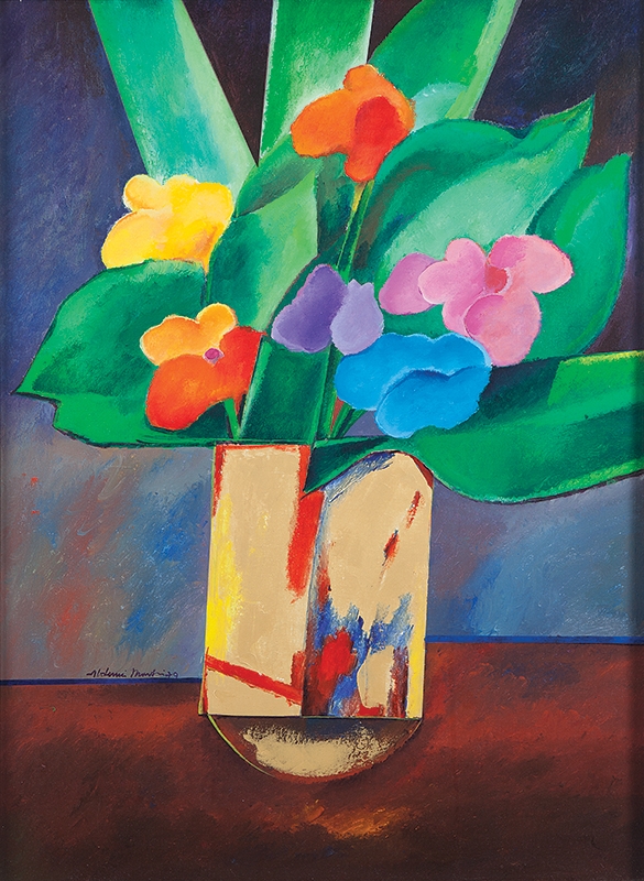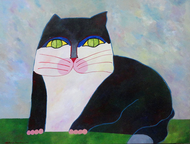 Aldemir Martins (Ingazeiras CE 1922 - São Paulo SP 2006). Pintor, gravador, desenhista, ilustrador. Em 1941, participa da criação do Centro Cultural de Belas Artes, em Fortaleza, com Antonio Bandeira (1922-1967), Raimundo Cela (1890-1954), Inimá de Paula (1918-1999) e Mario Baratta (1915-1983), um espaço para exposições permanentes e cursos de arte. Três anos depois, a instituição passa a chamar-se Sociedade Cearense de Artes Plásticas - SCAP. Aldemir Martins produz desenhos, xilogravuras, aquarelas e pinturas. Atua também como ilustrador na imprensa cearense. Em 1945, viaja para o Rio de Janeiro, e, menos de um ano depois, muda-se para São Paulo, onde realiza sua primeira individual e retoma a carreira de ilustrador. Entre 1949 e 1951, freqüenta os cursos do Museu de Arte de São Paulo Assis Chateaubriand - MASP e torna-se monitor da instituição. Estuda história da arte com Pietro Maria Bardi (1900-1999) e gravura com Poty Lazzarotto (1924-1998). Em 1959, recebe o prêmio de viagem ao exterior do Salão Nacional de Arte Moderna e permanece por dois anos na Itália. Desde o início da carreira sua produção é figurativa, e o artista emprega um repertório formal constantemente retomado: aves, sobretudo os galos; cangaceiros, inspirados nas figuras de cerâmica popular; gatos, realizados com linhas sinuosas; e ainda flores e frutas. Nas pinturas emprega cores intensas e contrastantes.