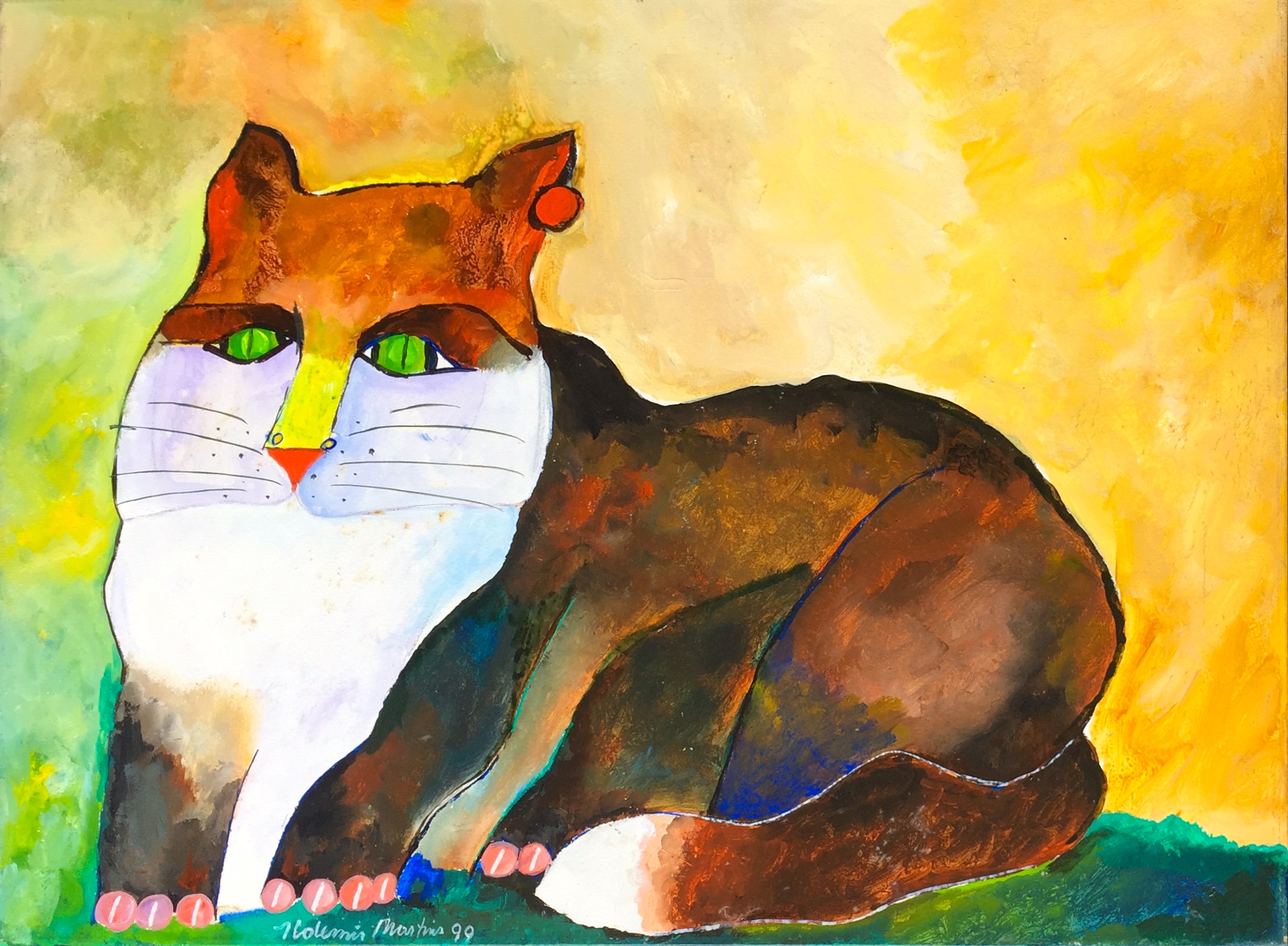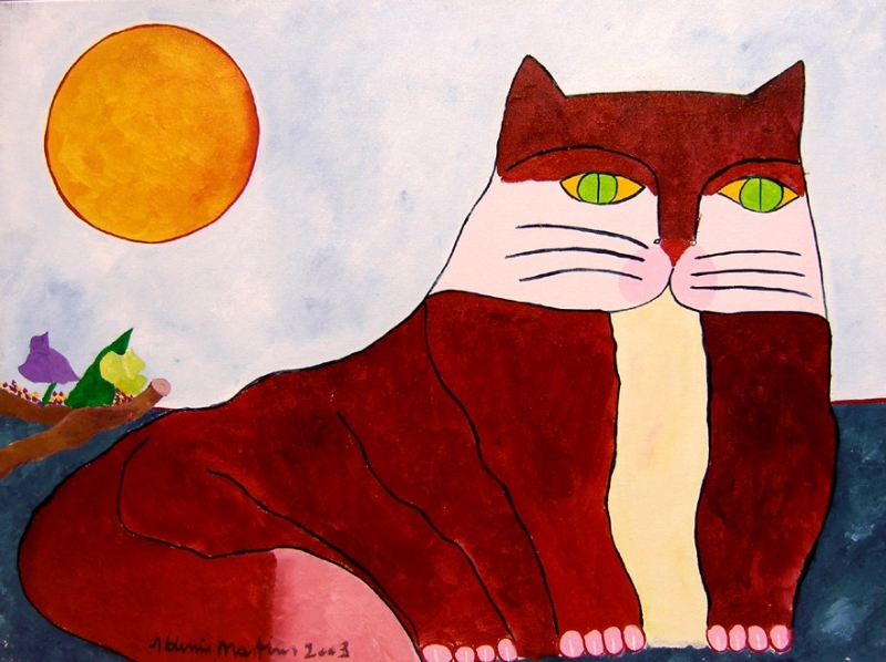 Aldemir Martins - Gato - Acrilica sobre cartão - 12x12 - Acie - Com Documento Autenticidade