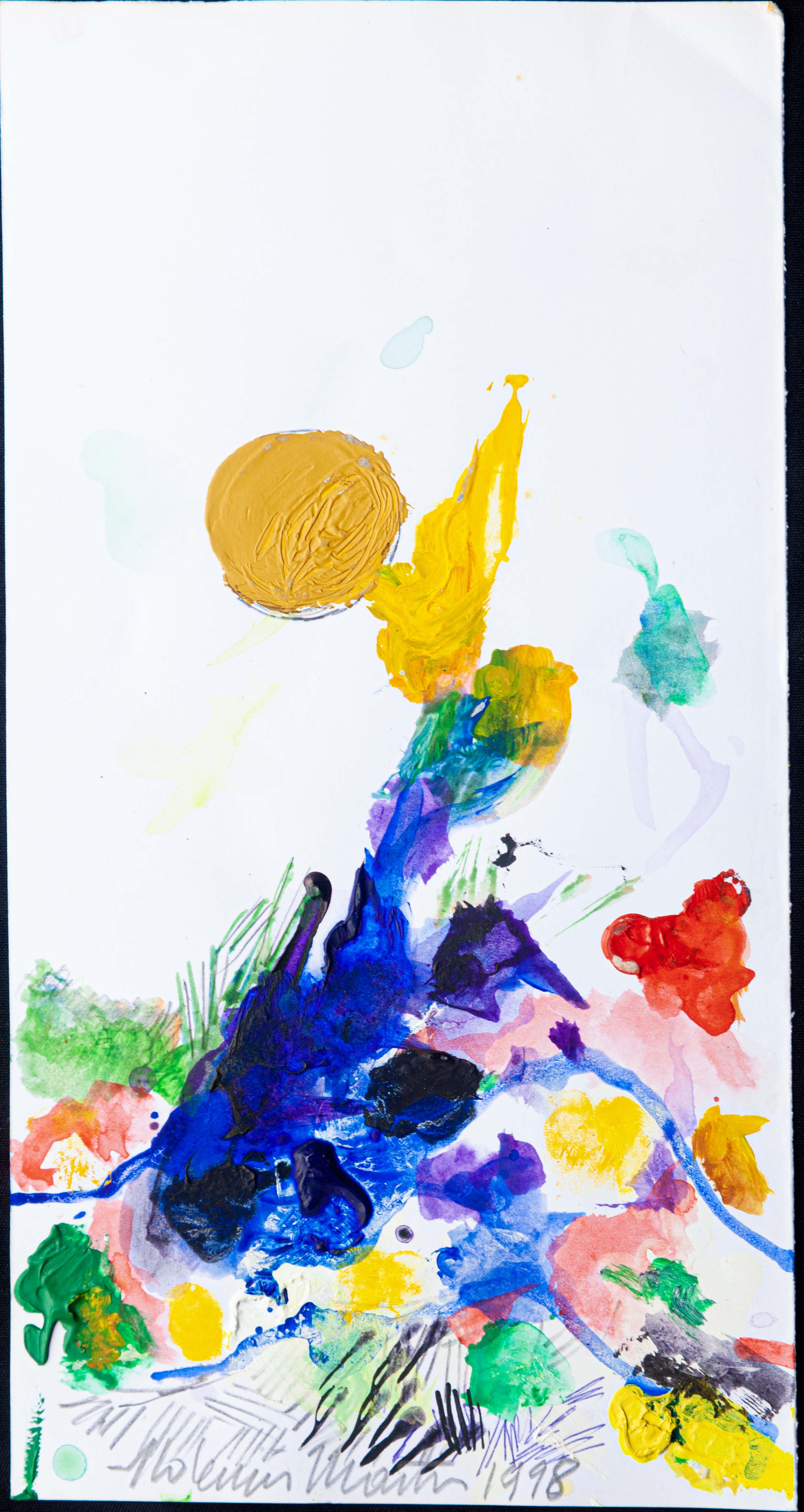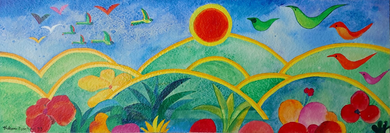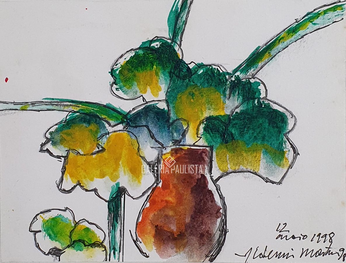 Aldemir Martins - Flor e Sol - Aquarela - 22x18 - 1977 - Assinada