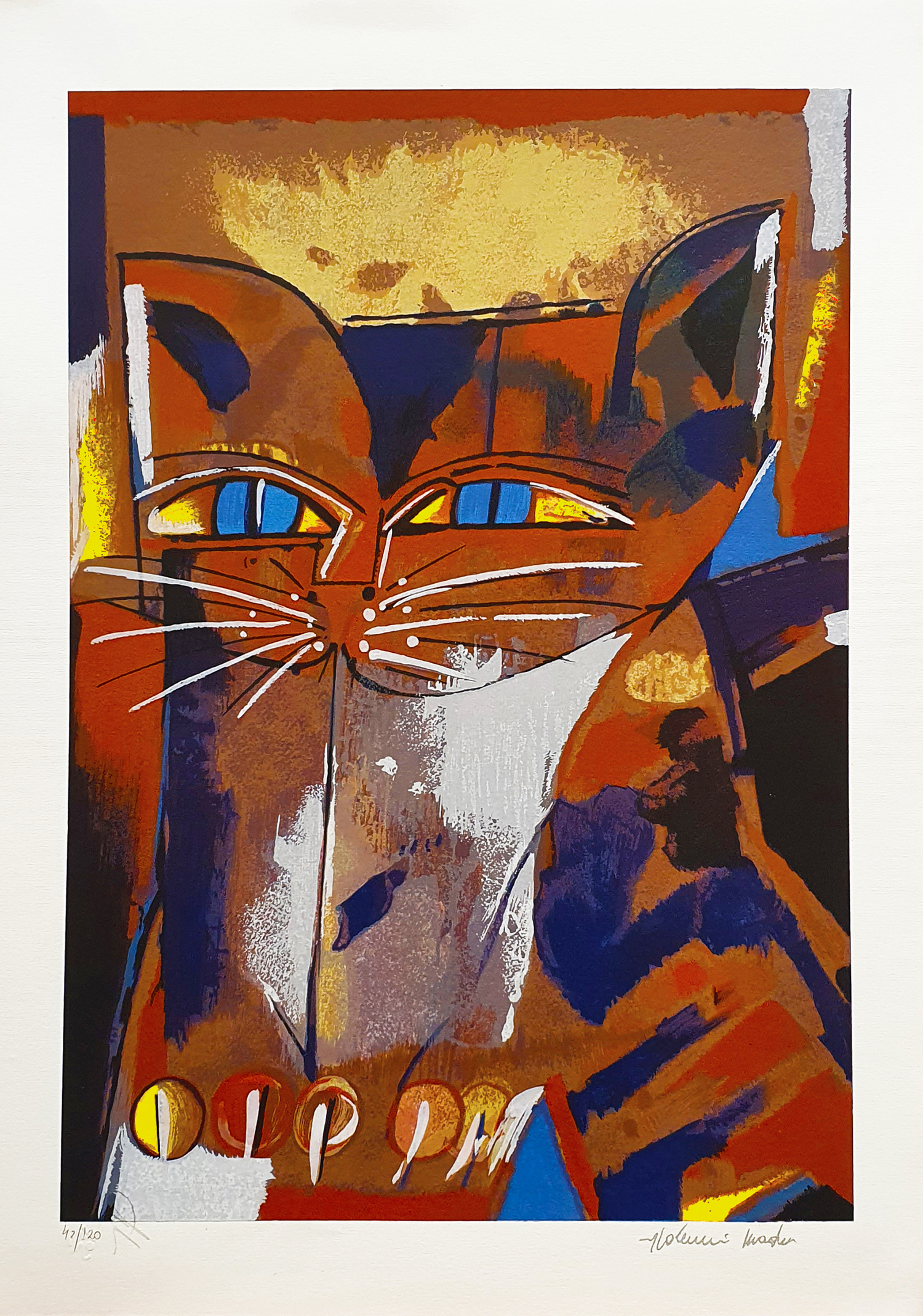 Aldemir Martins - Gato Fundo Ocre - Serigrafia 43/90 - 44x50 - Acid - Edição Postutuma