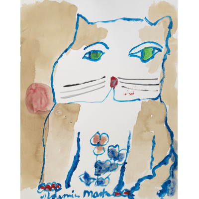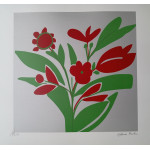 Aldemir Martins. Vaso com Flores. Acrílica sobre cartão, 31,5 x 21,5 cm. Assinado e datado embaixo no centro: Aldemir Martins 2000.