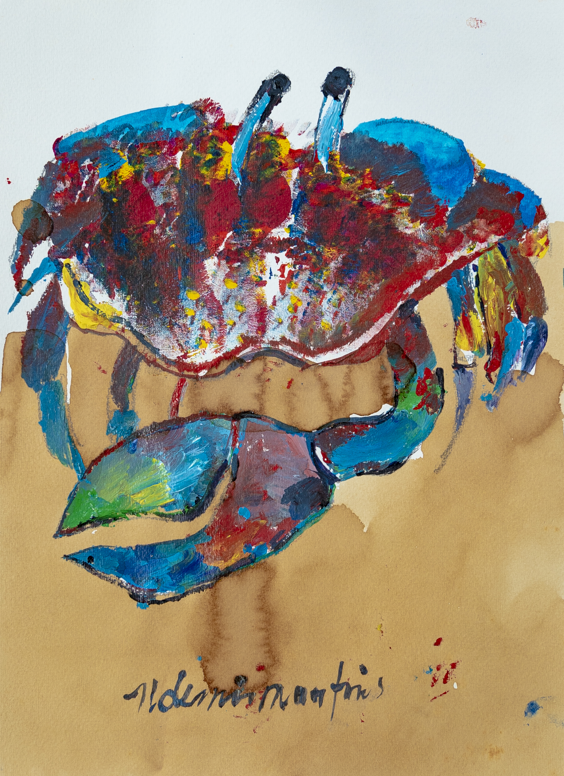 Aldemir Martins - Peixe. Acrílica sobre cartão, 30x40 cm, 1997-98, A.C.I.D. Sem moldura, com certificado assinado pelo próprio Aldemir.