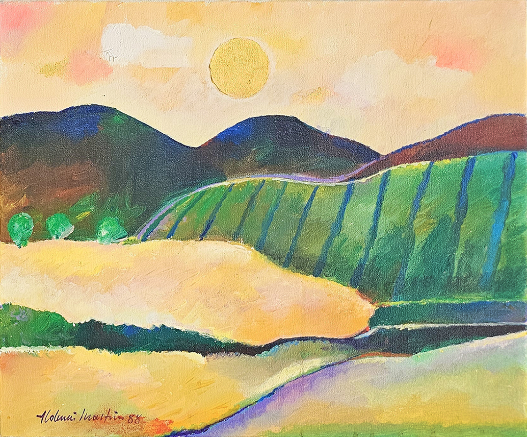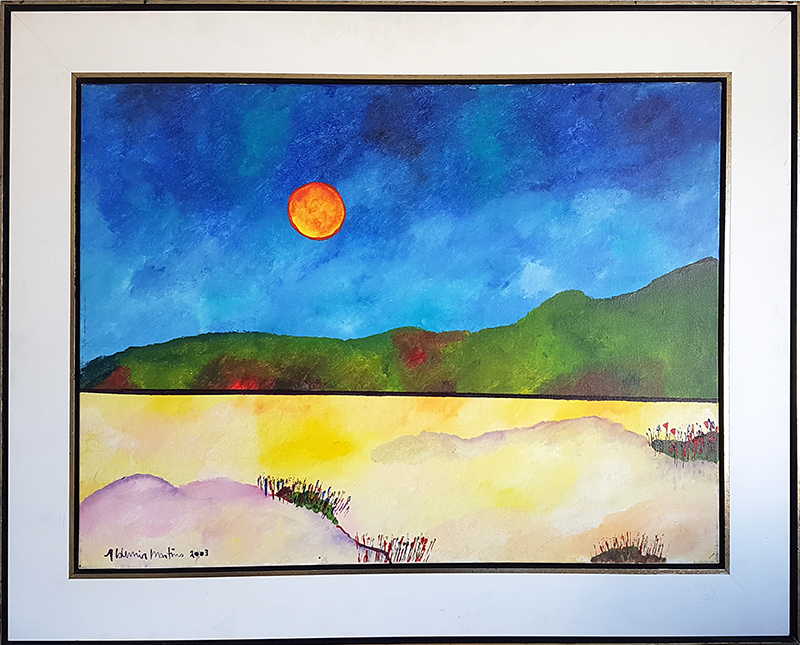 Aldemir Martins - Paisagem. Óleo sobre madeira, 29,5x27 cm, 1981, A.C.I.E. Com moldura