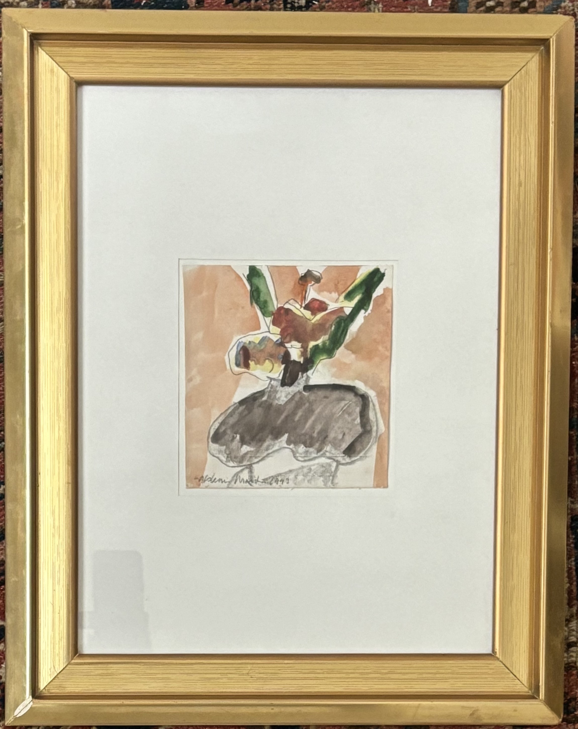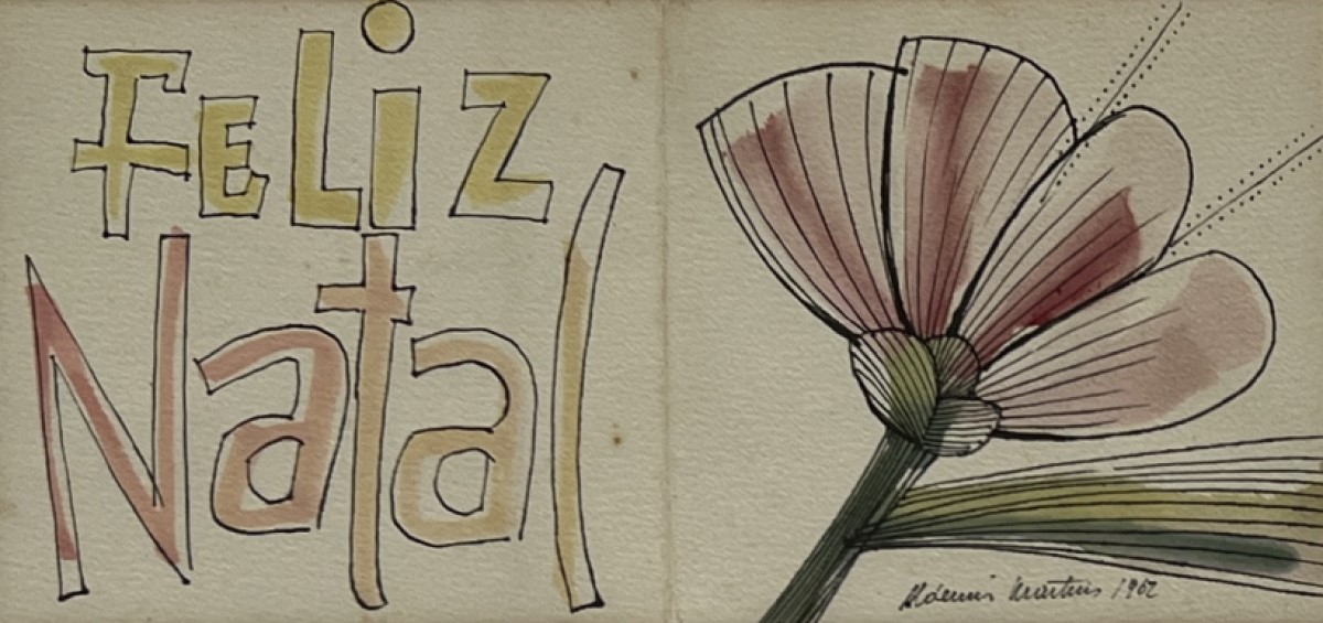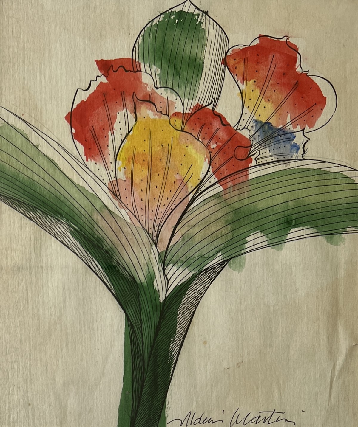 Aldemir Martins - Flor - Nanquim e Aquarela sobre cartão - 08x11 - Acid - Com Documento Autenticidade