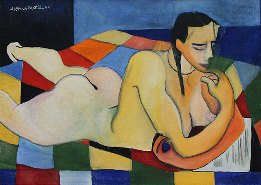 Aldemir Martins - Cajús, 1970 - Acrílica sobre tela, assinado lateral esquerda; assinado e datado no verso. - 46 x 55 cm.
