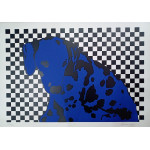 Aldemir Martins - Gato Azul - Acrílica sobre Cartão colado em madeira - 57 x 37 cm. 1993. Ass. Acompanha certificado do Pedro Martins