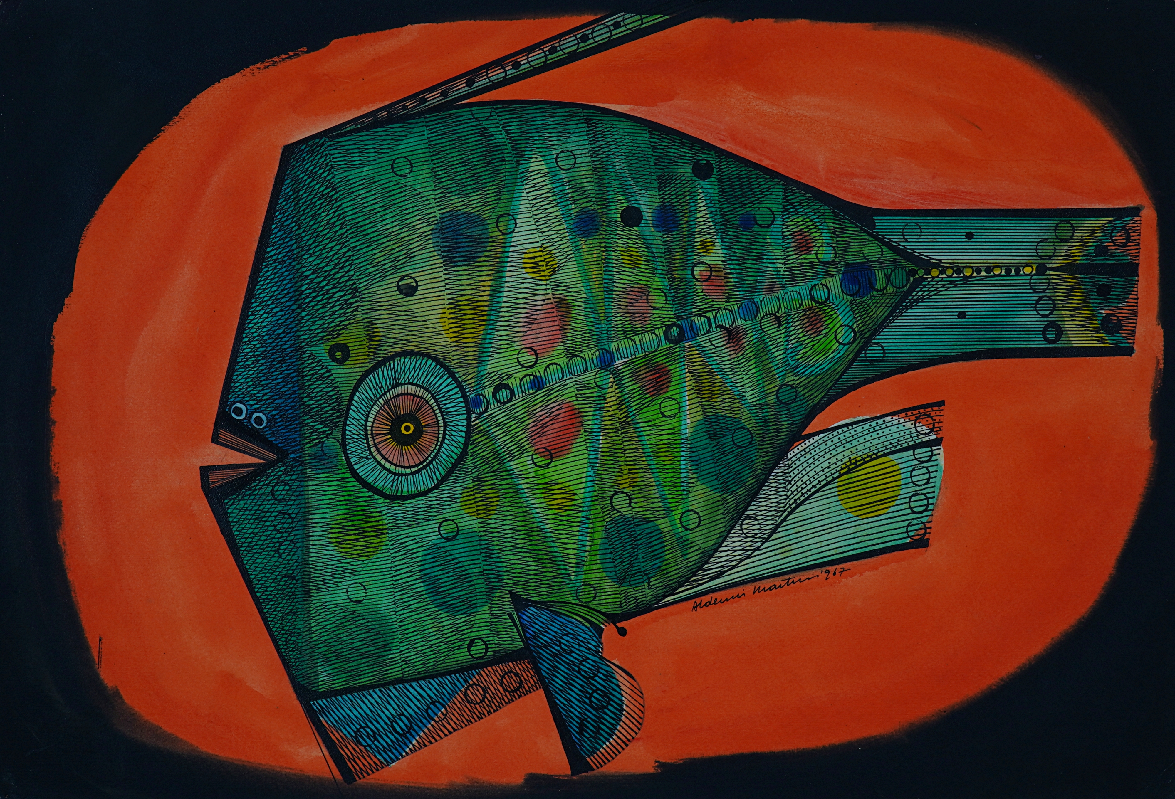 Aldemir Martins - Girassol. Nanquim e acrílica sobre papel, 69x19 cm, 1962, A.C.I.E. e V. Sem moldura