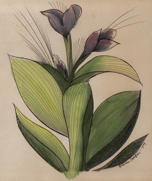 Aldemir Martins - Flor, 1964 - Nanquim sobre papel, assinado e datado e situado São Paulo, inferior esquerdo. - 80 x 56 cm.
