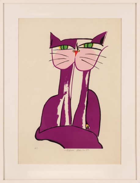 Aldemir Martins - Gato roxo - Serigrafia 64/120 - 70x50 - Acid - Edição Postutuma