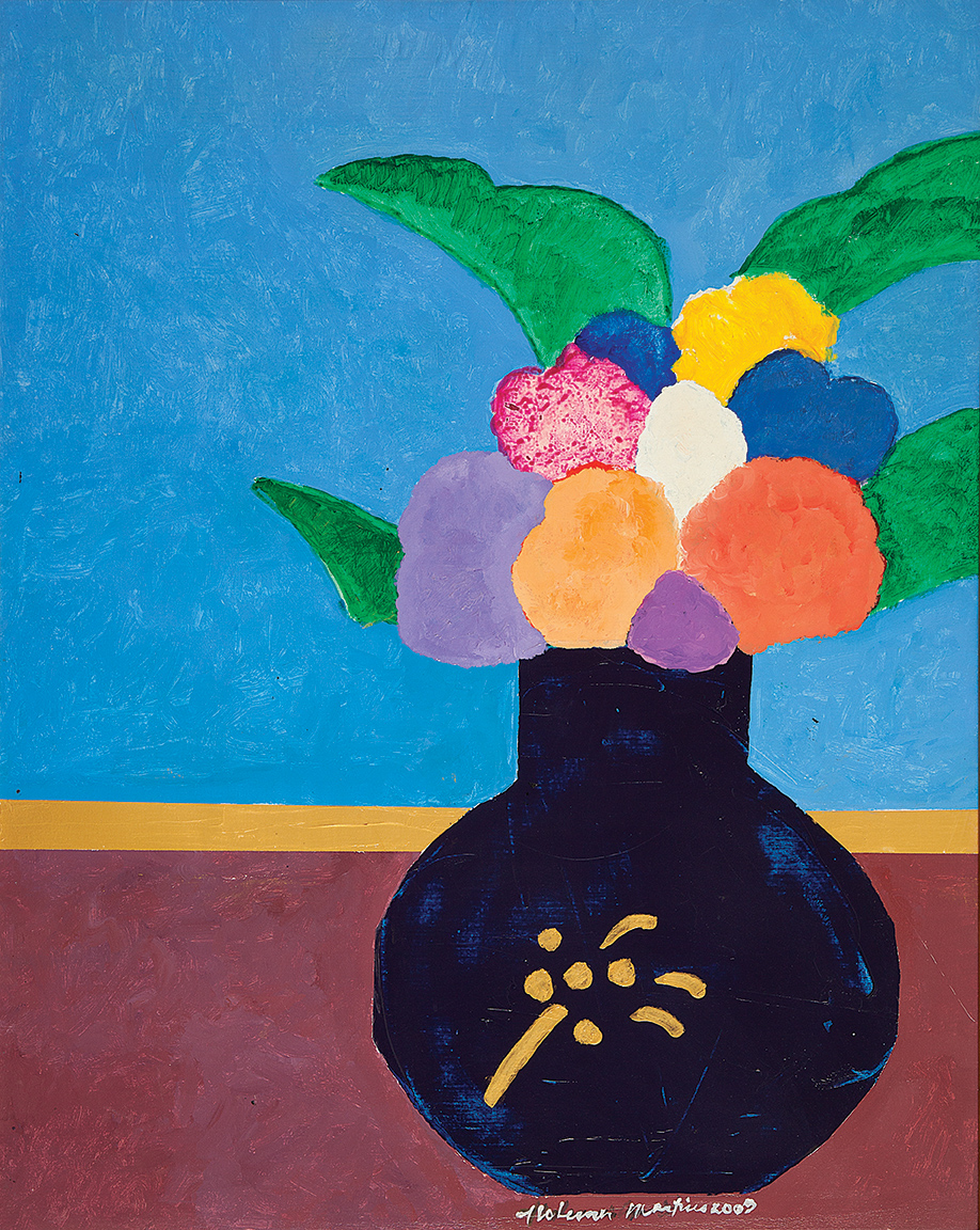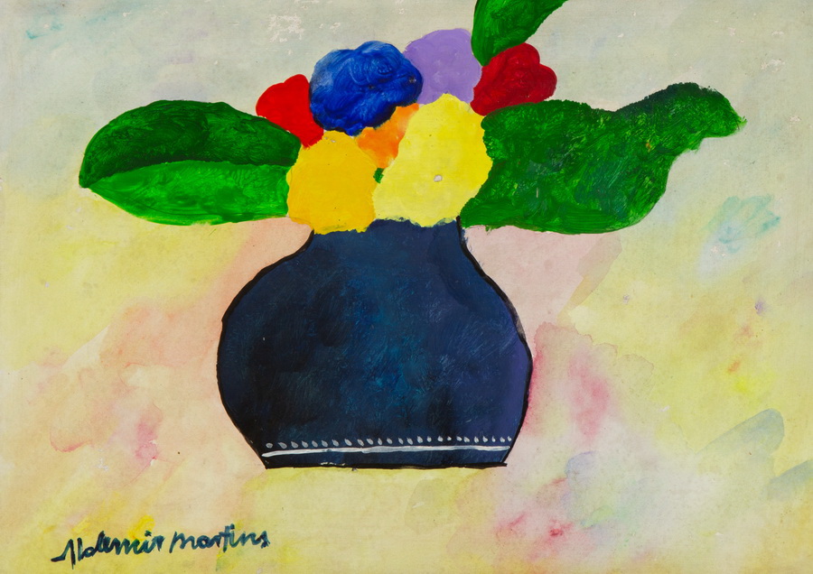 Aldemir Martins - Vaso de flores. Óleo sobre tela, 75x25 cm, sem data, sem assinatura. Com moldura e certificado do Estúdio Aldemir Martins.