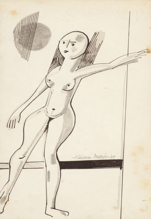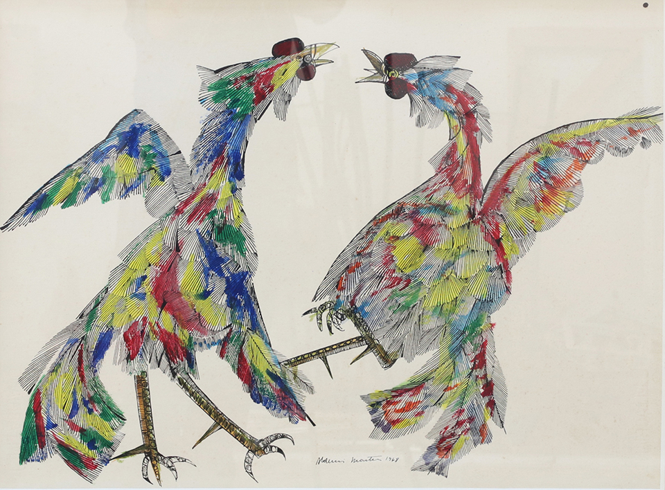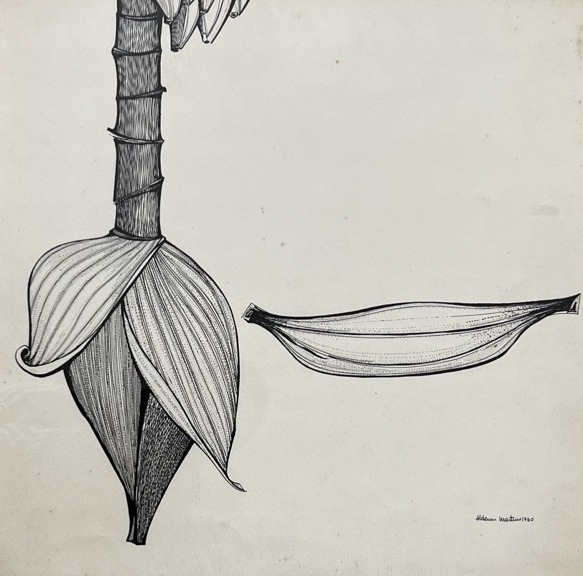 Aldemir Martins - Côcos - 35 x 35 cm - Nanquim e aguada sobre papel - Assinatura canto inferior direito e Data 1960 - Catalogado na Galeria Bonino sob o número 782
