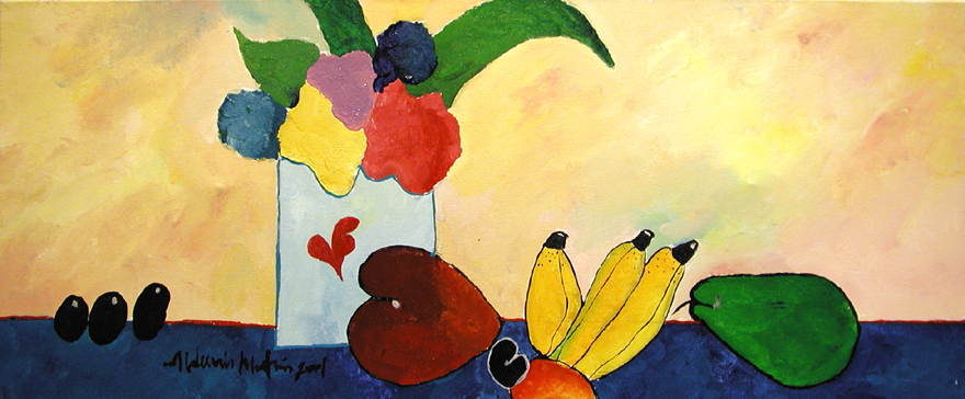 Aldemir Martins - Bananas verdes - 59 x 73 cm - Óleo sobre tela - Assinatura canto inferior direito e Data 1973 - Catalogado sob o número BR 5503 da Galeria Bonino