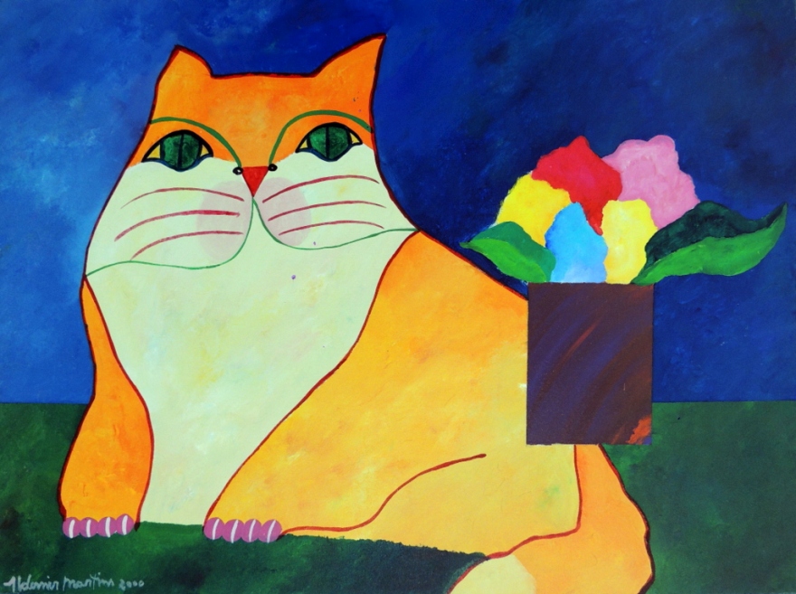 Aldemir Martins, Gato azul, 2000, Acrílico sobre tela, 60x80, Acie, Belas Artes