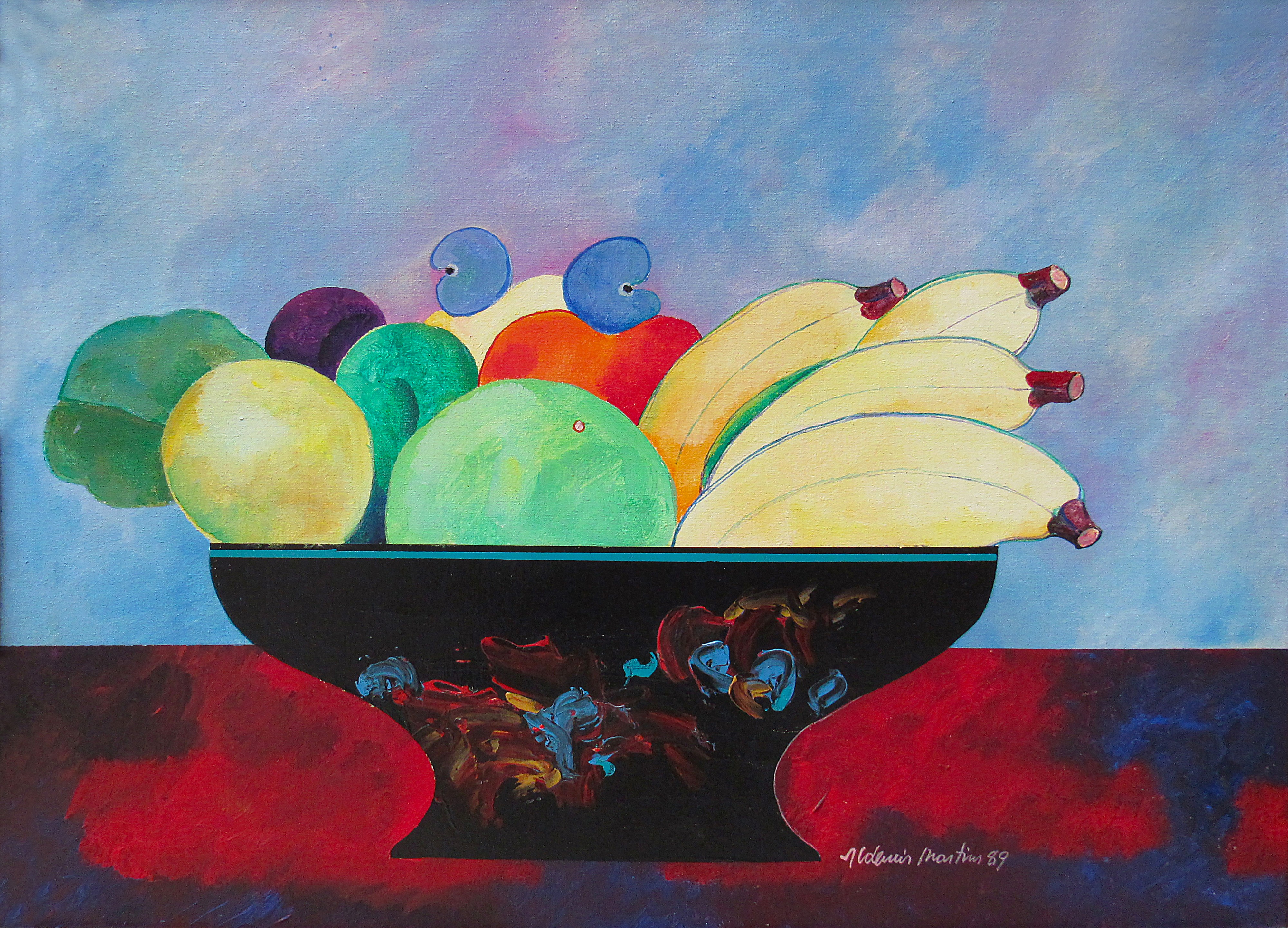 Aldemir Martins - Bananas verdes - 59 x 73 cm - Óleo sobre tela - Assinatura canto inferior direito e Data 1973 - Catalogado sob o número BR 5503 da Galeria Bonino