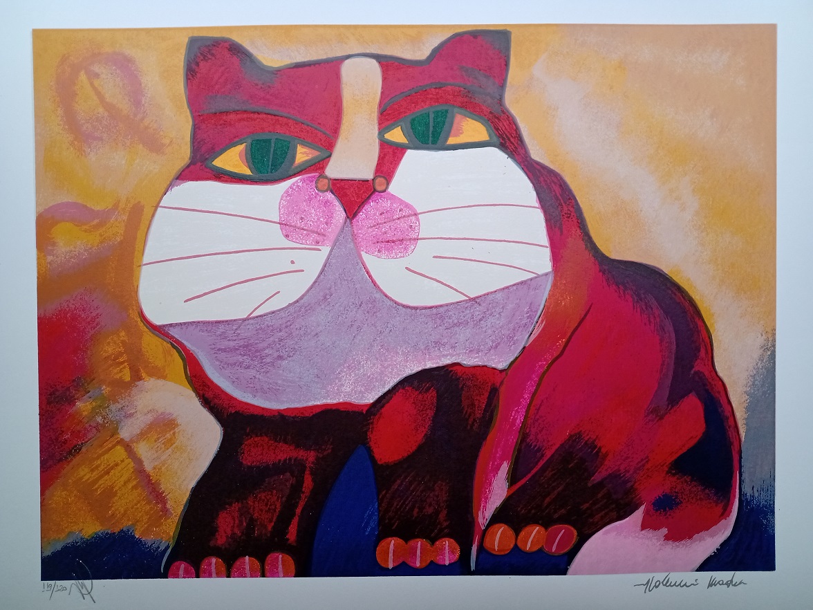 Aldemir Martins, Gato vermelho, Acrílico sobre tela, 60x80, Acie, Belas Artes