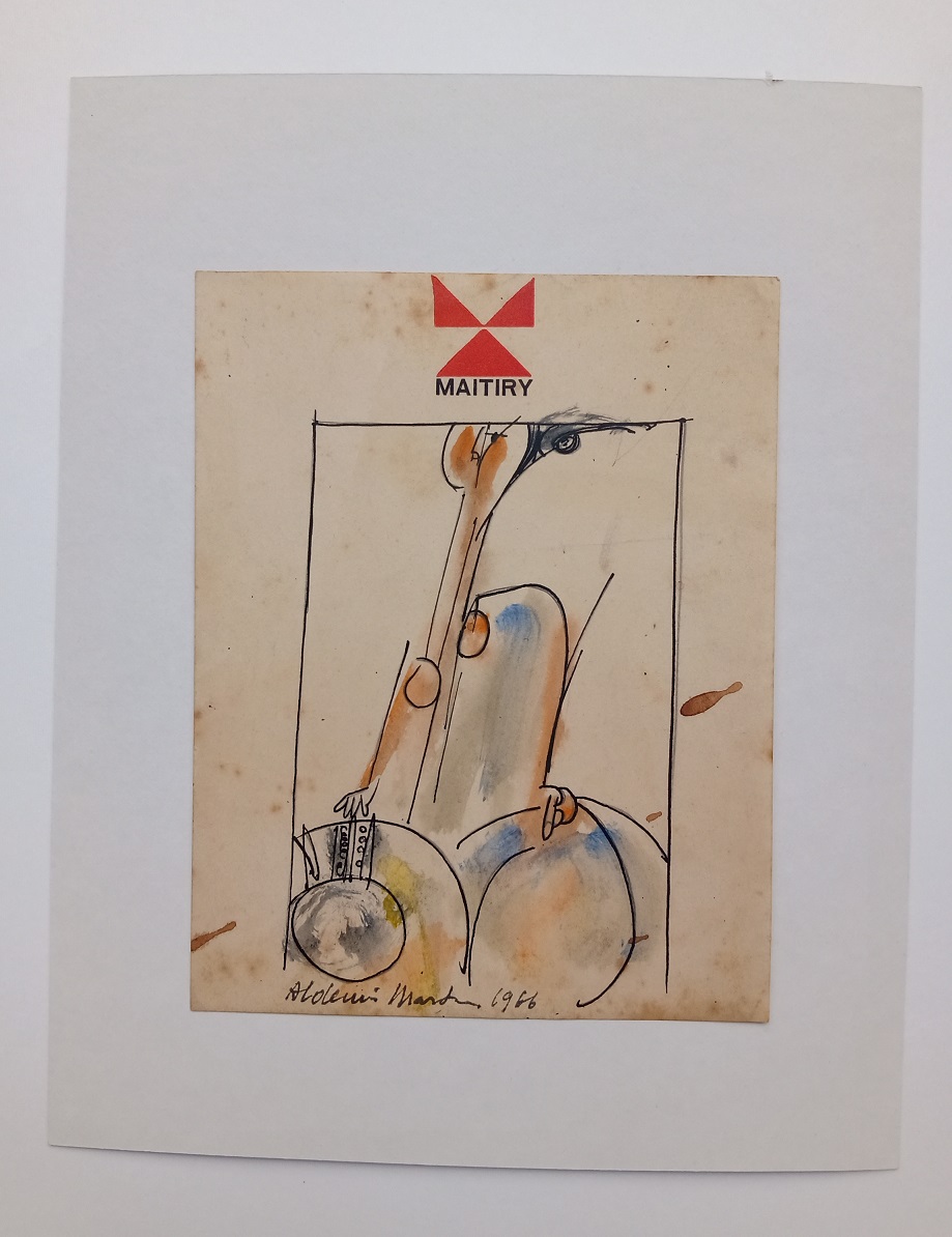 Aldemir Martins - Côcos - 35 x 35 cm - Nanquim e aguada sobre papel - Assinatura canto inferior direito e Data 1960 - Catalogado na Galeria Bonino sob o número 782