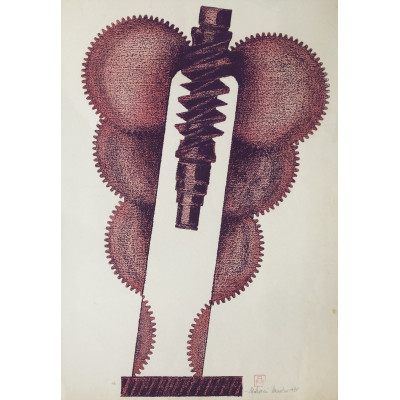 Aldemir Martins nanquim sobre papel 50 x 32cm "Galo" ass. CID datada 1967 apresenta pequenos pontos de fungo