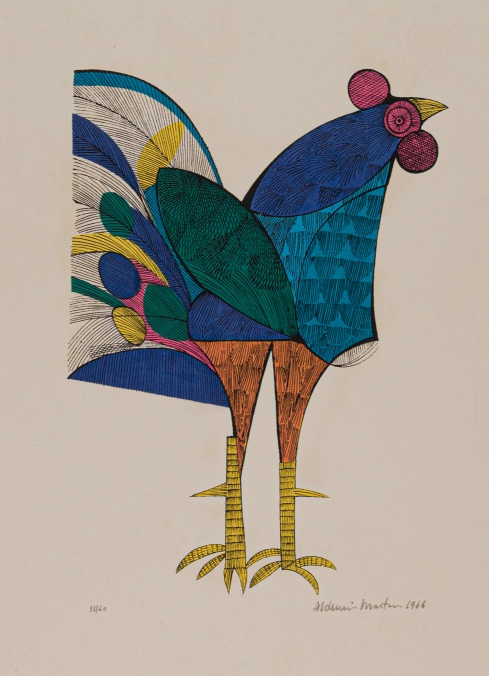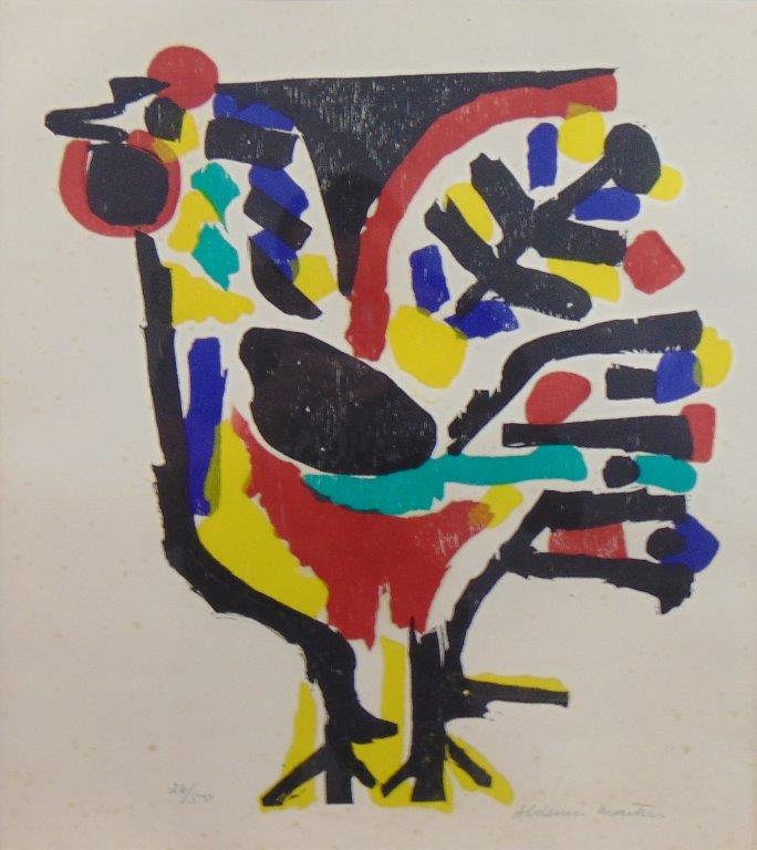 Aldemir Martins - Galo - 9-60. Serigrafia,  66x48 cm, 1966, A.C.I.D. a lápis. Com moldura
