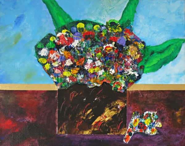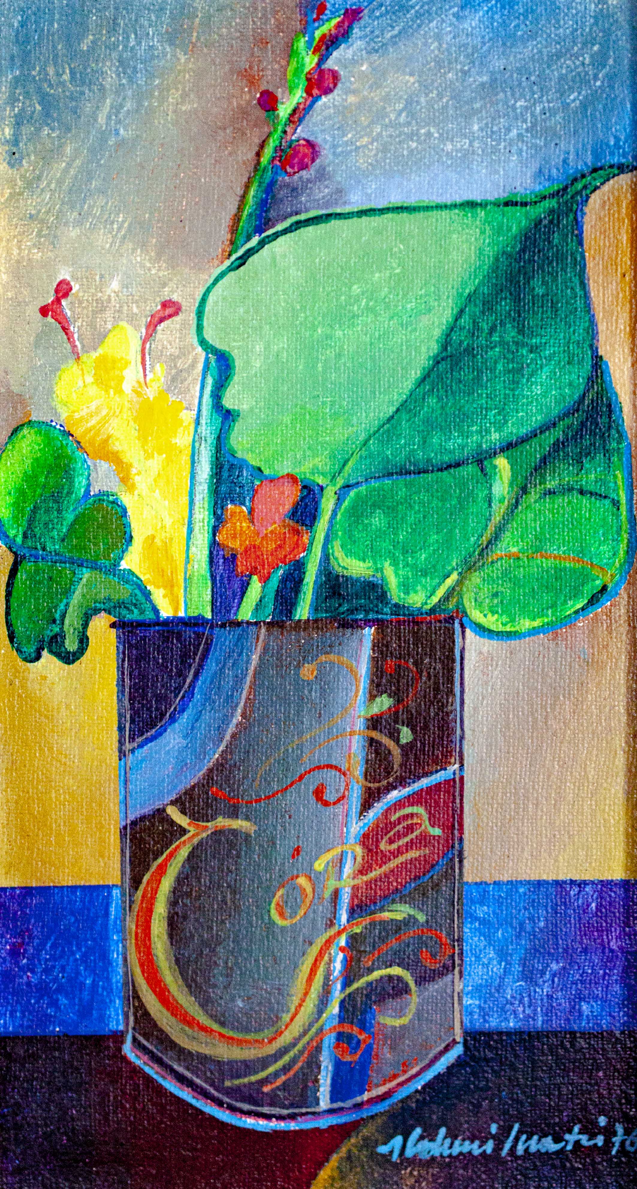 Aldemir Martins - Vaso de flores. Óleo sobre tela, 75x25 cm, sem data, sem assinatura. Com moldura e certificado do Estúdio Aldemir Martins.