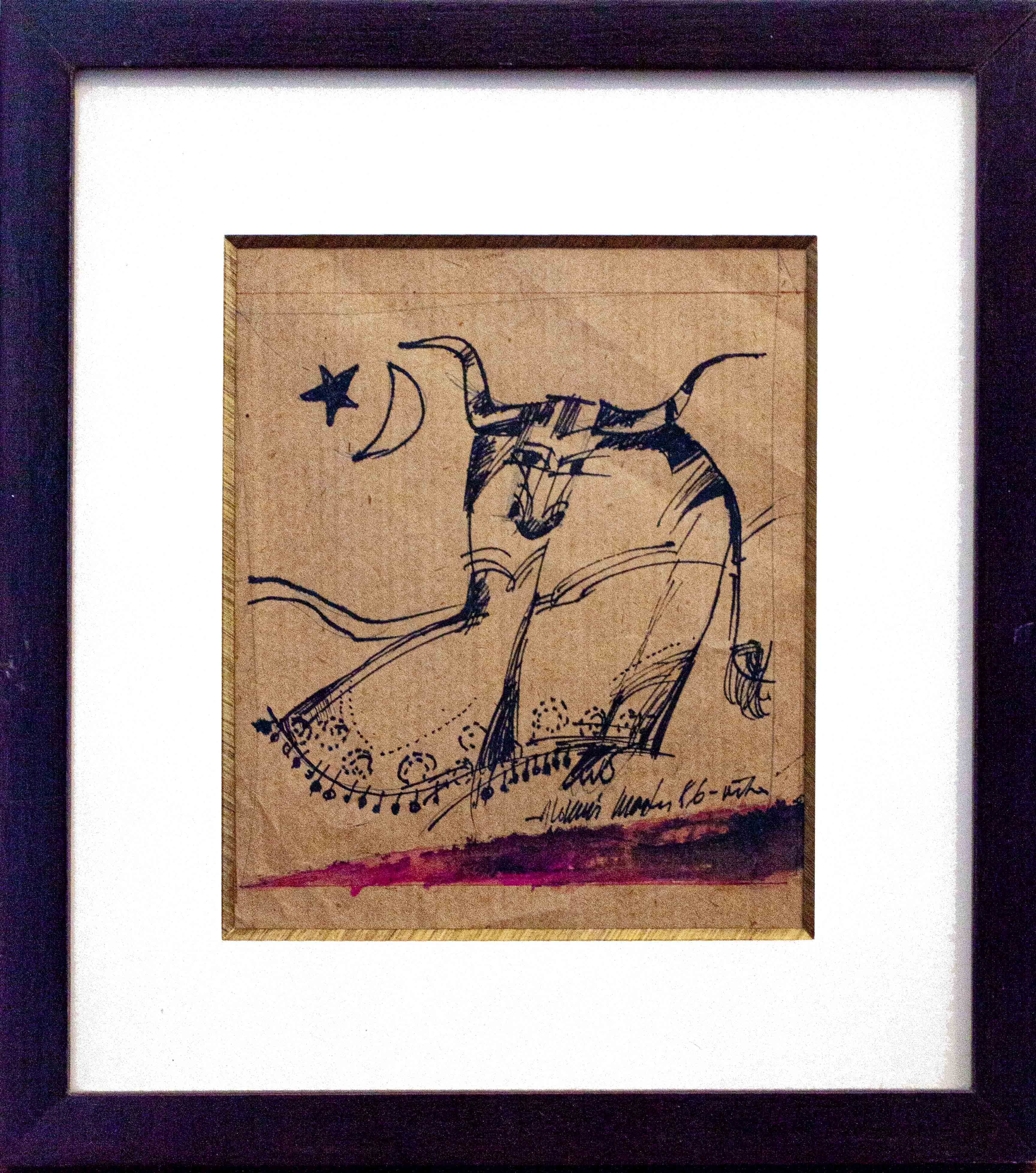 Aldemir Martins - Feliz Aniversário, 1964 - Nanquim e aquarela sobre papel, assinado e datado na parte inferior. 17 x 18 cm.