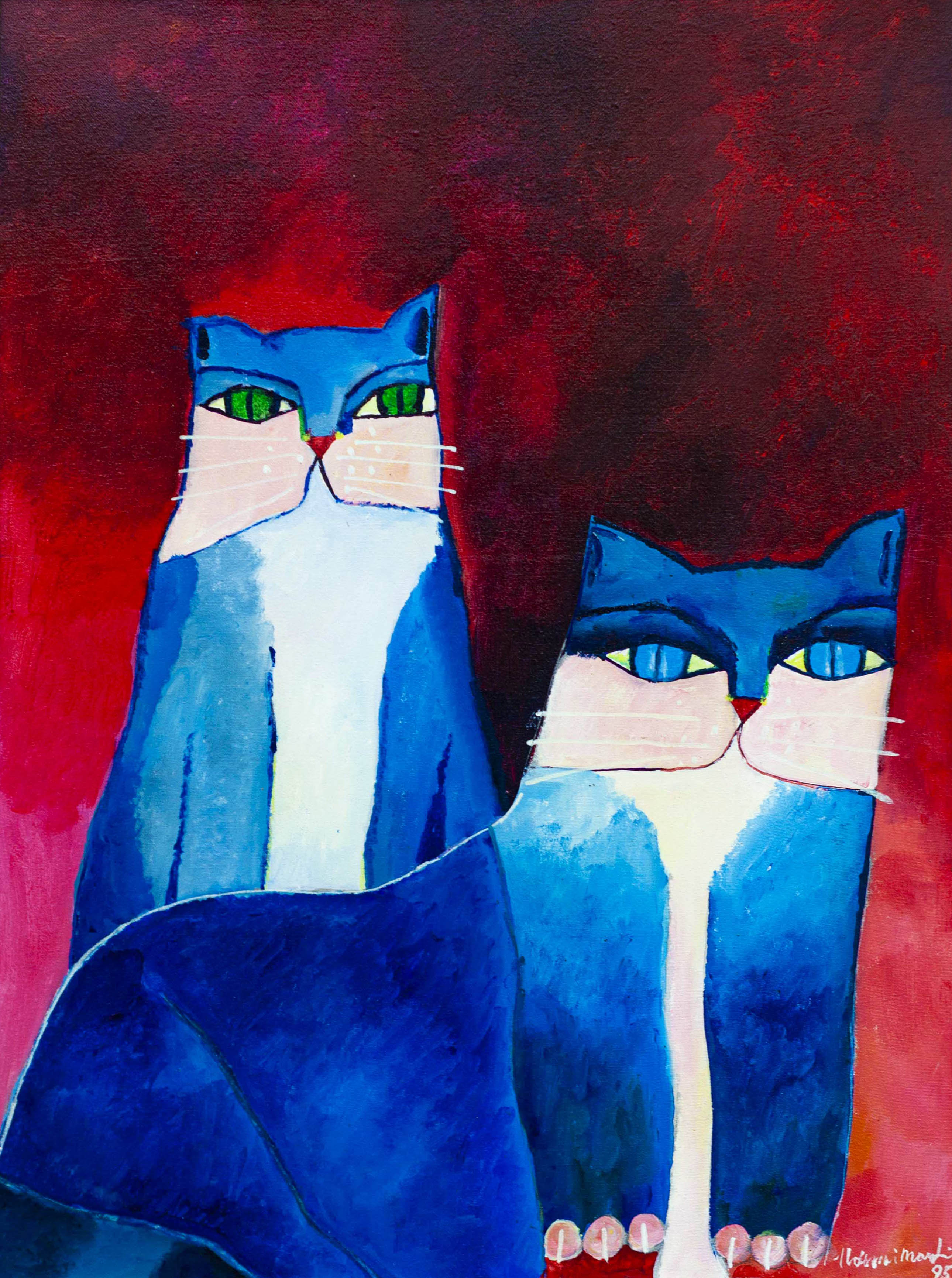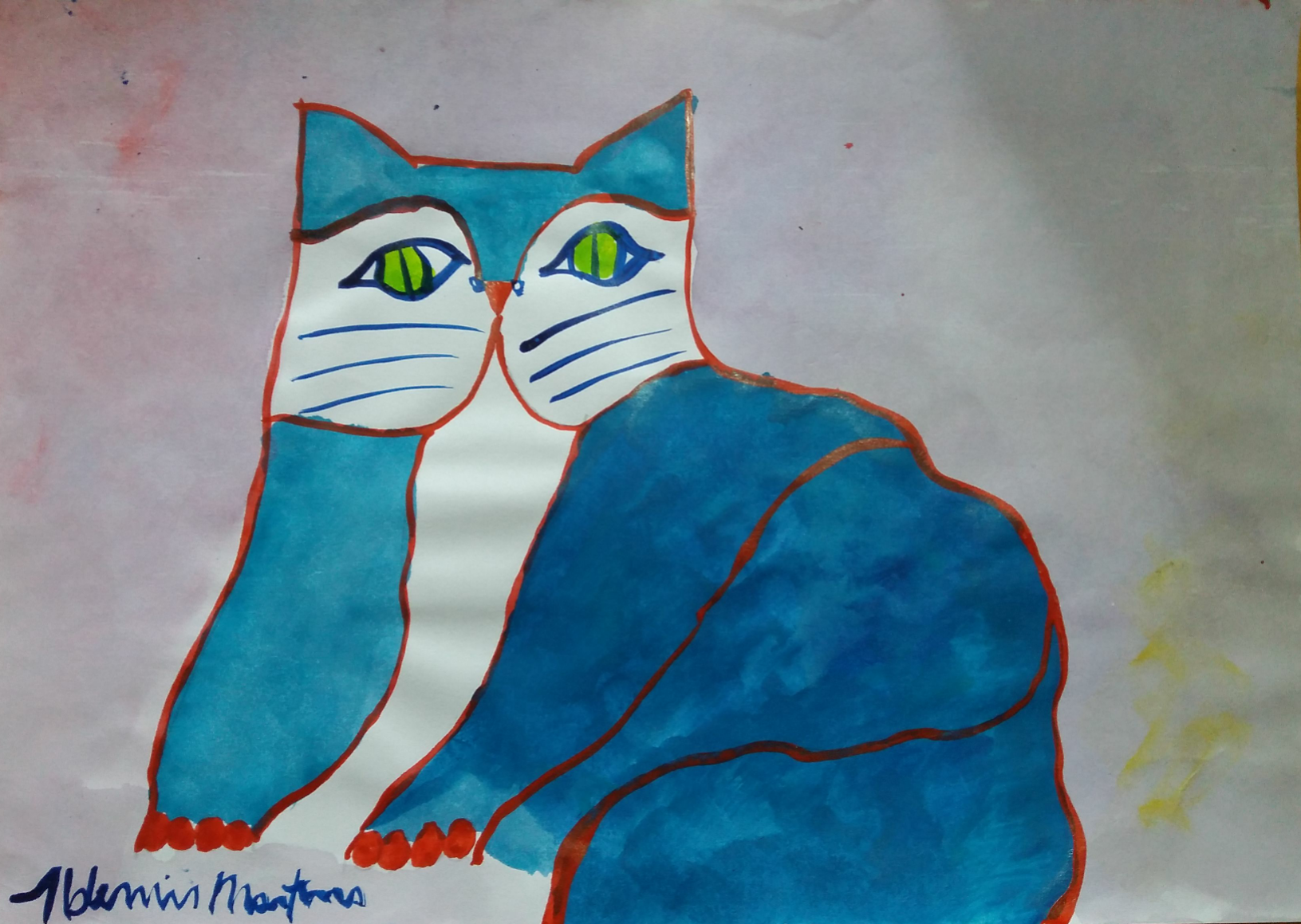 Aldemir Martins - Gatinho azul. Acrílica sobre papel, 22x14,5 cm, 1985, A.C.I.D. Sem moldura. Com certificado de autenticidade do Estúdio Aldemir Martins