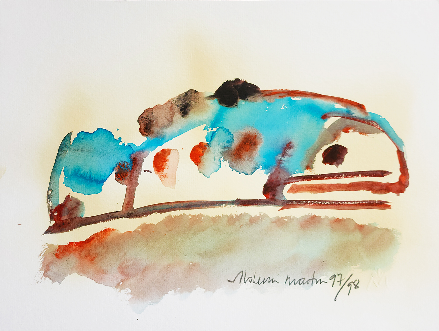 Aldemir Martins - Paisagem - Desenho a Nanquim e Aquarela - 14x11 - Ass.sup.dir - 1962 - Com certificado do Estudio Aldemir Martins